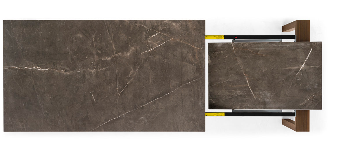 Rozkladací stôl OMNIA s hnedou doskou a tmavou drevenou základňou