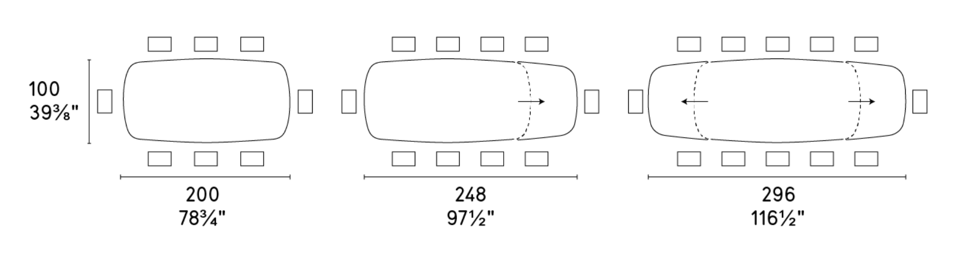 Szerokość: 200 - 248 - 296 cm