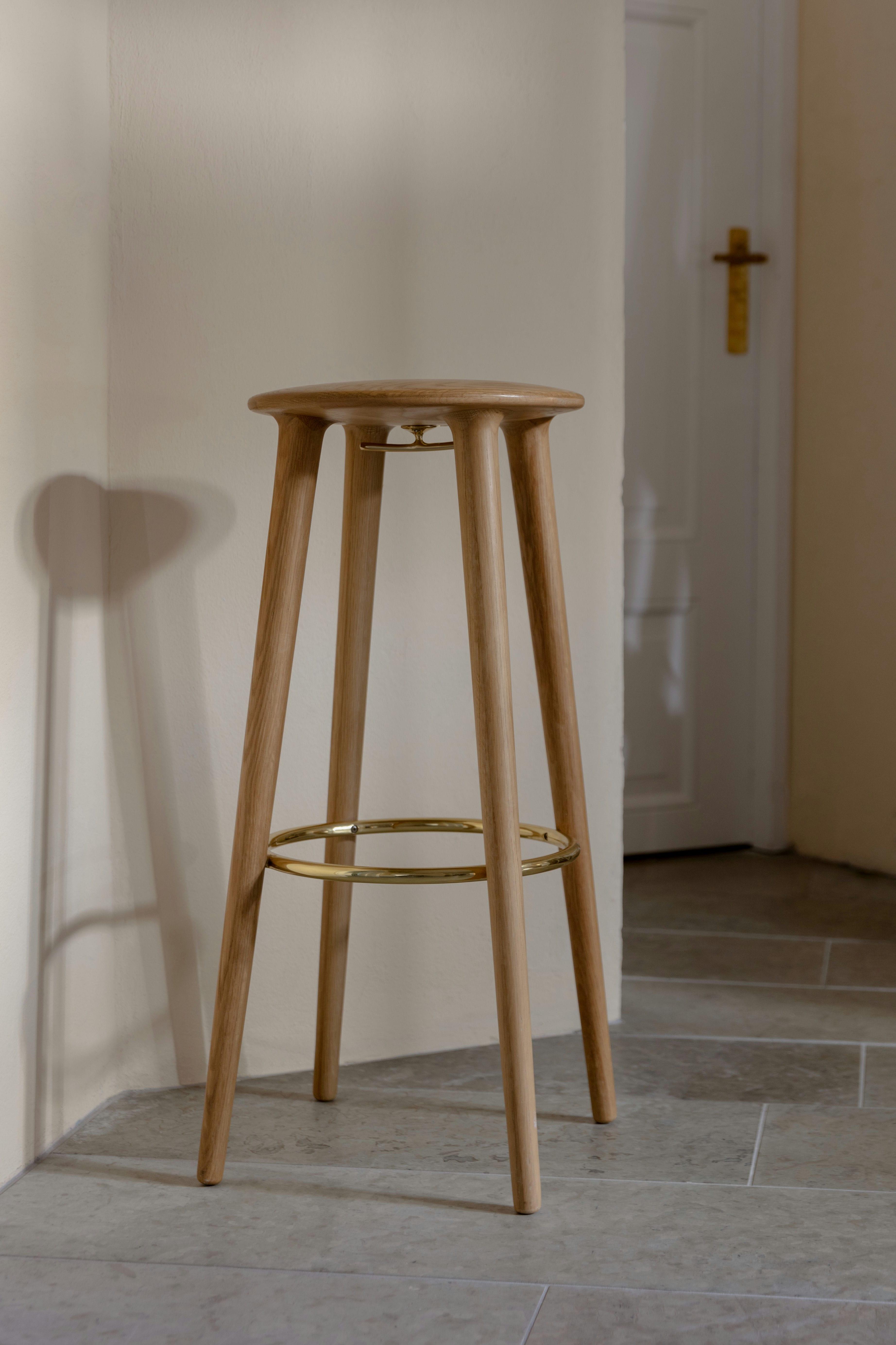 Barový stolička Socialite je starostlivo vypracovaný výraz remeselnej precíznosti a dôrazu na detaily. Vyrobený z kvalitného duba a ozdobený dizajnovým mosadzným podnožím a háčikom, tento nábytok obohatí atmosféru vo vašom domove – nielen počas rozhovorov.