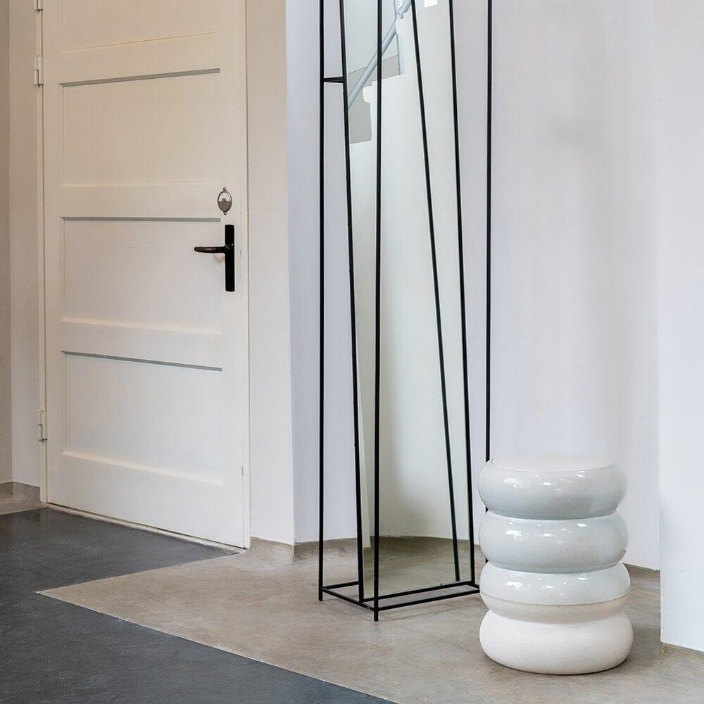Biely stoliček Chubby s charakteristickým tvarom je model, ktorý sa dokonale hodí do interiéru glamour, moderného klasického štýlu, ako aj do iných štýlov. Stolička Chubby je kombináciou jednoduchosti a zaujímavého dizajnu. Tento model je vyrobený z čiastočne glazovanej kameniny, vďaka čomu jeho hladká a drsná štruktúra a forma pripomínajú knedľu. Stolička Chubby je skvelým doplnkom do spálne alebo obývačky - osvedčuje sa aj ako bočný stolík.