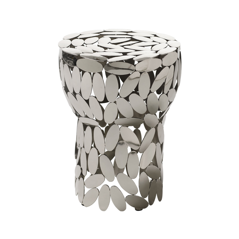 Bočný stolík Foliae je dizajnérska perla, ktorá spája praktickú funkciu s umeleckou formou. Projekt od Roberta Mory očarí svojím originálnym vzhľadom – konštrukcia je ručne vyrobená z dekoratívnych, listovým podobných prvkov z ocele so strieborným povrchom. Sochárska forma a precízne zvary robia z Foliae nielen nábytok, ale aj pôsobivú ozdobu priestoru.