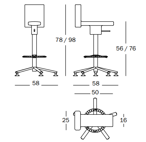 Wysokość siedziska: 56 / 76 cm