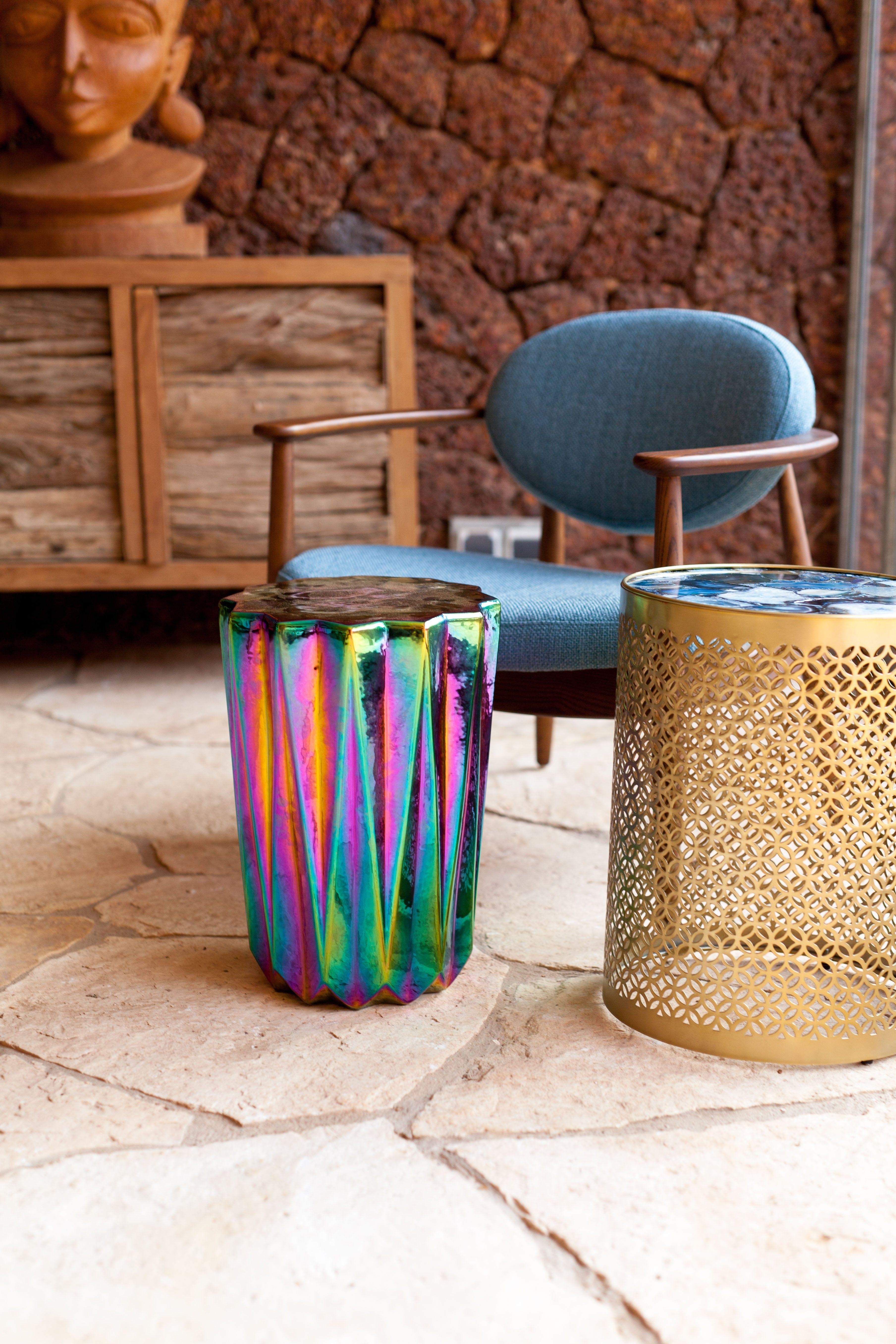 Stolička Oily Folds je jedinečný doplnok navrhnutý Roderickom Vosom. Hra farieb a charakteristický odtieň benzínu nachádzajúceho sa v kaluži vody robí z stoličky Oily Busk vstup do úplne iného sveta plného rozprávkových tvarov a neobyčajného dizajnu.