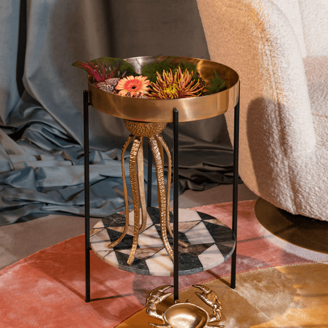 Funkcjonalny, zdejmowany blat przyda się jako taca na napoje. Another Marble będzie się pięknie prezentować w salonie utrzymanym w stylu art deco, sypialni w stylu retro czy jadalni w stylu vintage.