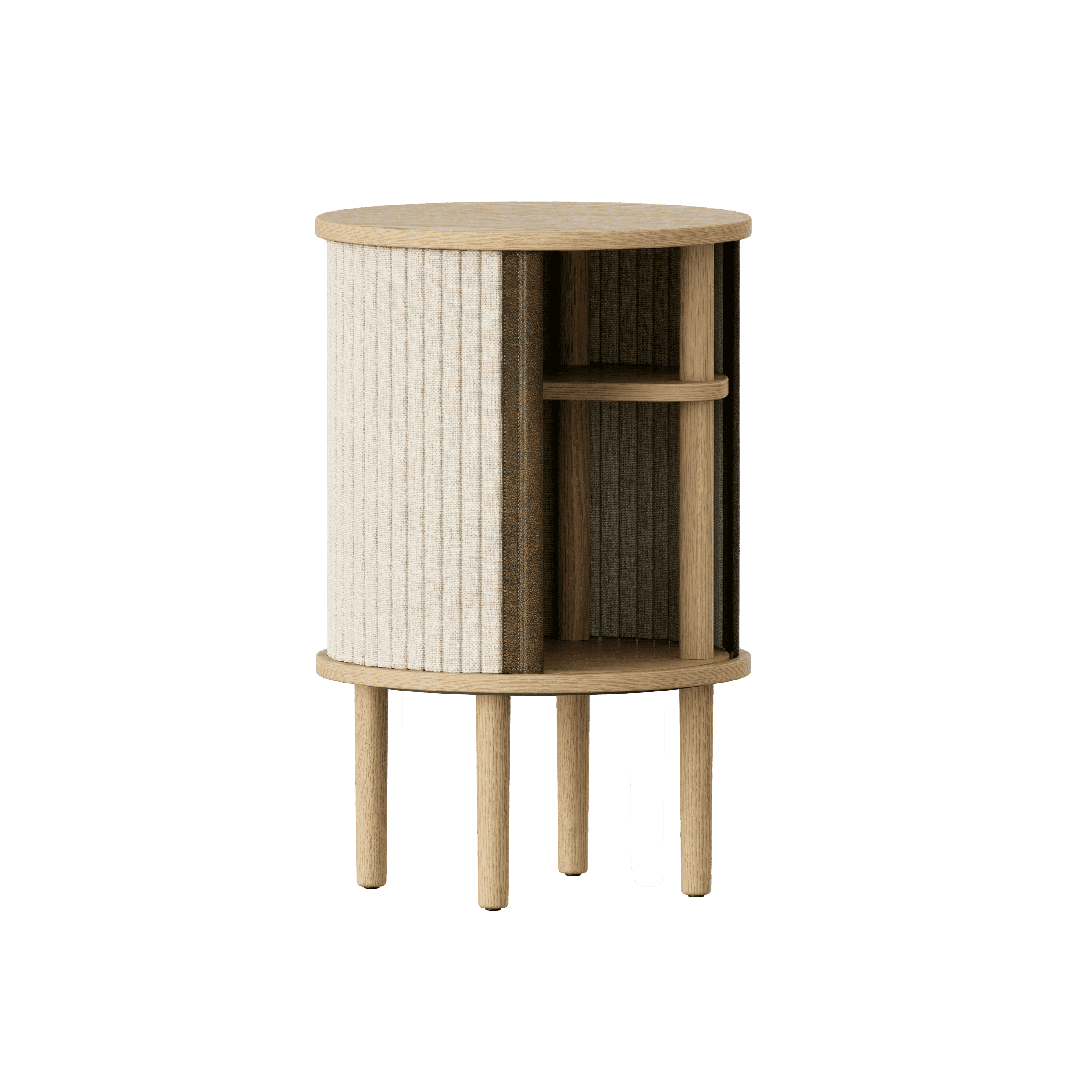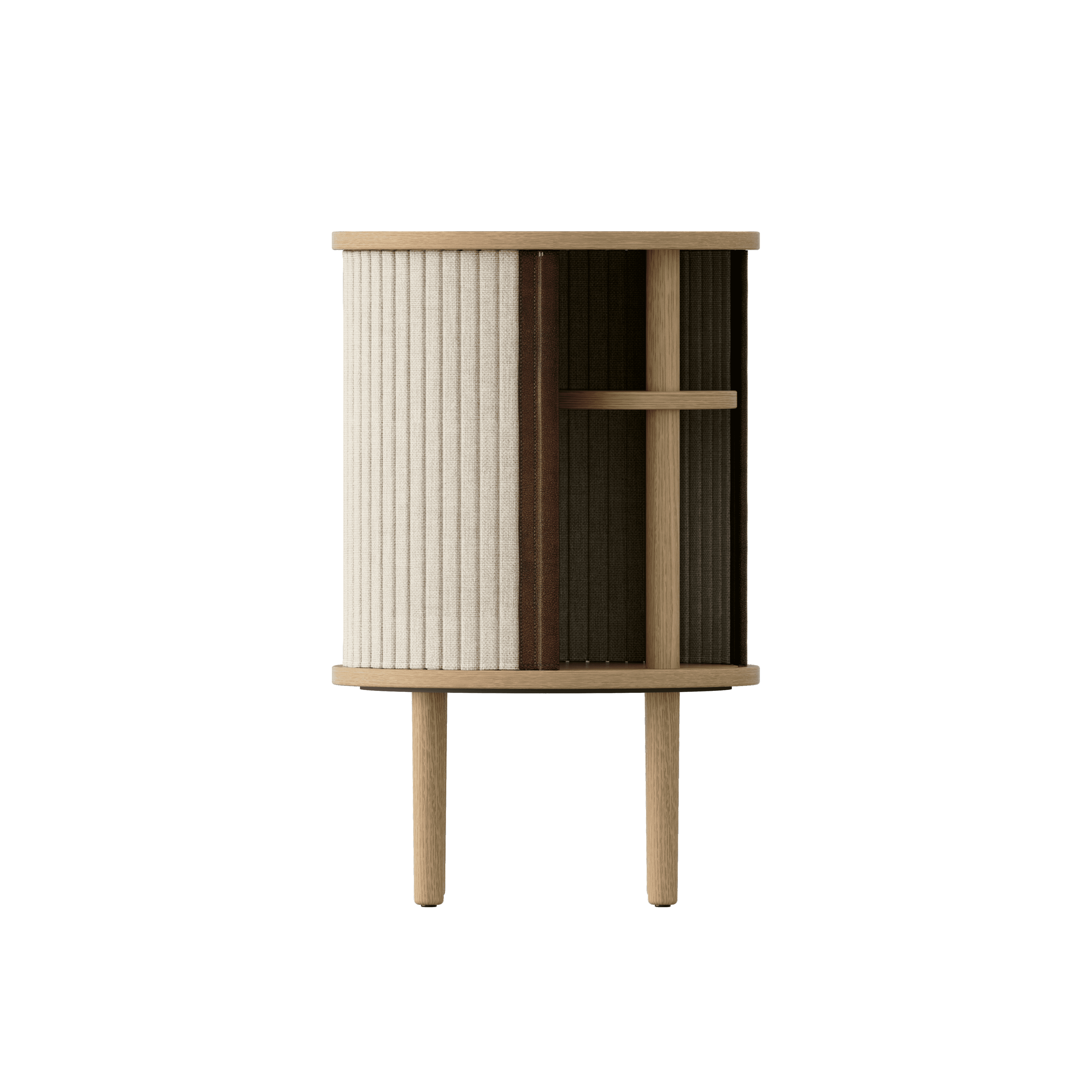 Dostupný v troch farbách: prírodný dub, tmavý dub a čierny dub, s žalúziami v štyroch starostlivo vybraných farbách tkaniny Horizons, ktorá je vyrobená na 100% z recyklovaných materiálov. Žalúzie sú vymeniteľné, čo znamená, že ich môžete ľahko meniť sami, čím pridáte nový život projektu bez nutnosti zakúpenia úplne nového nábytku, čo zároveň prispieva k šetreniu svetových zdrojov.