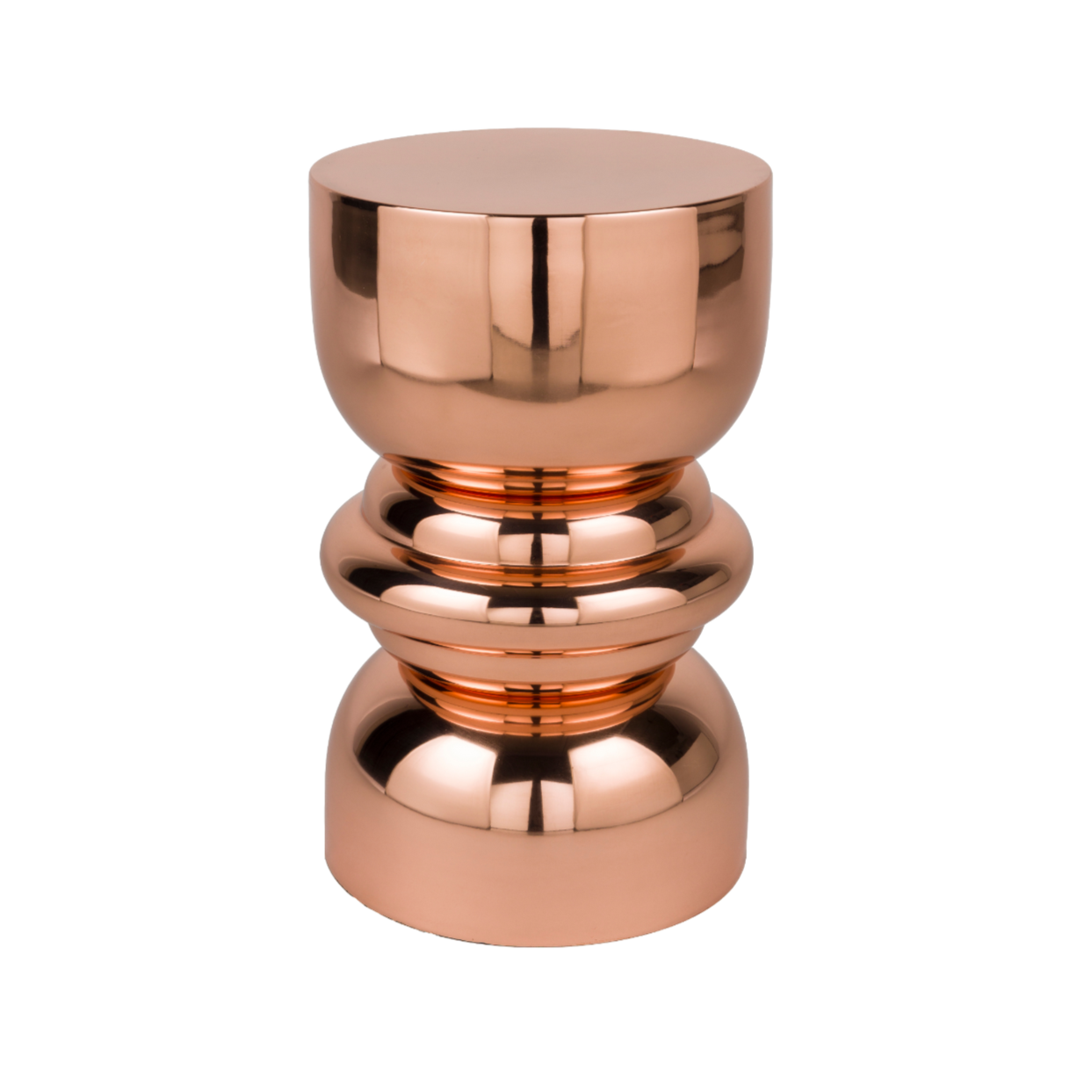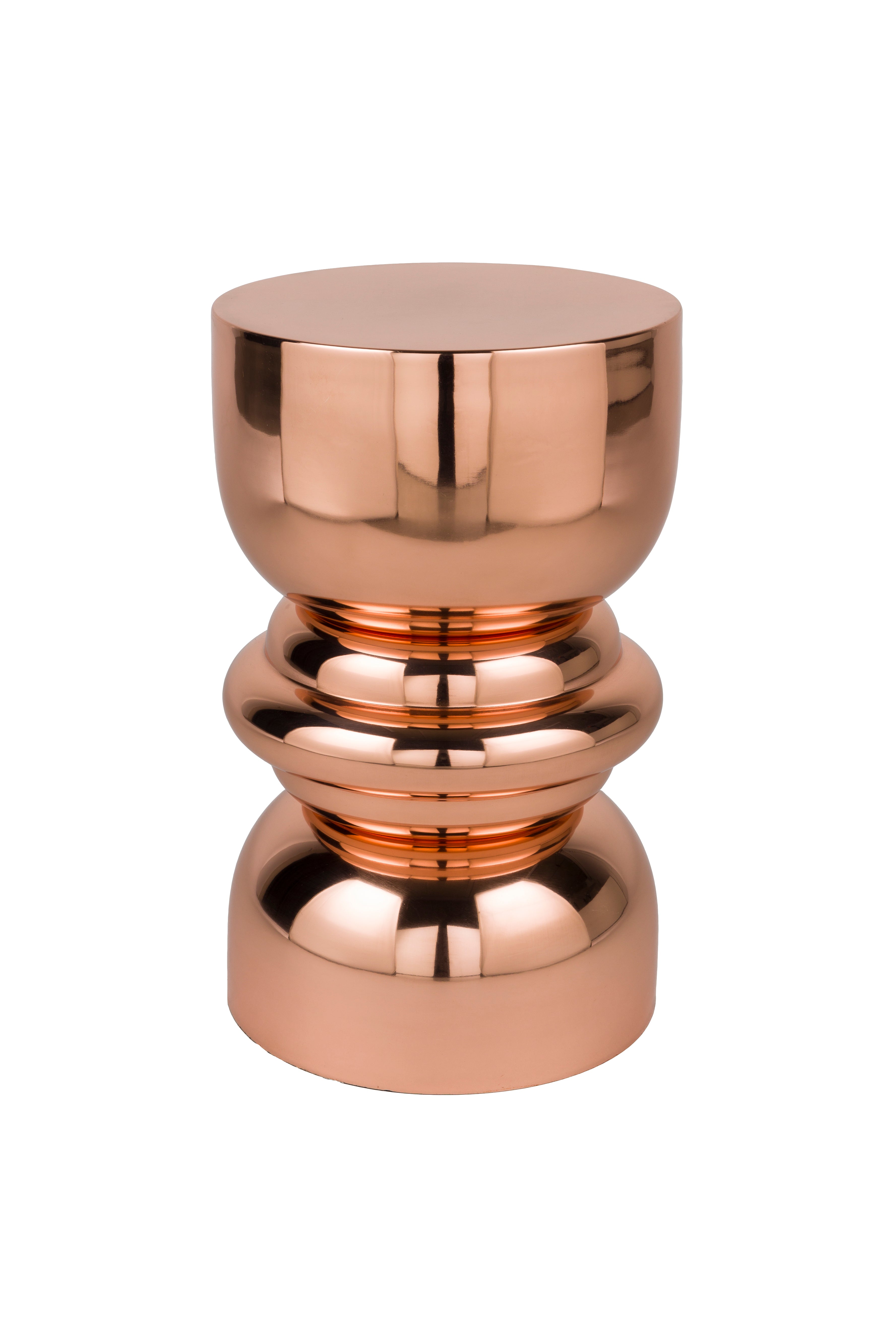 Elegantný bočný stolík v bronzovej farbe sa vyznačuje výnimočnou formou inšpirovanou geometrickými tvarmi a lesklým povrchom. Lesklá plocha krásne odráža svetlo, čím dodáva interiéru luxusný charakter a priťahuje pozornosť ako dizajnový akcent.