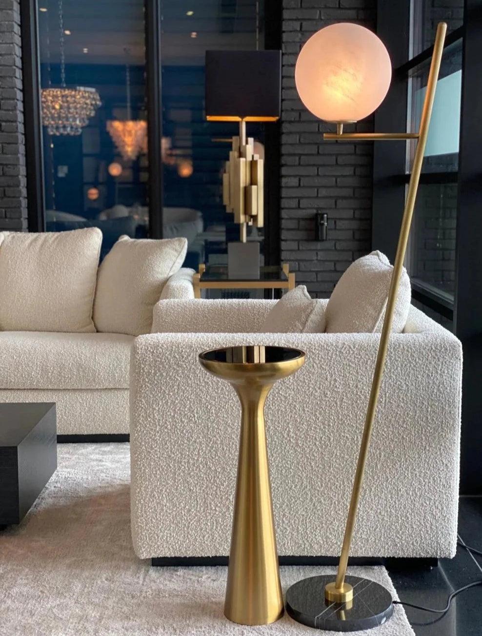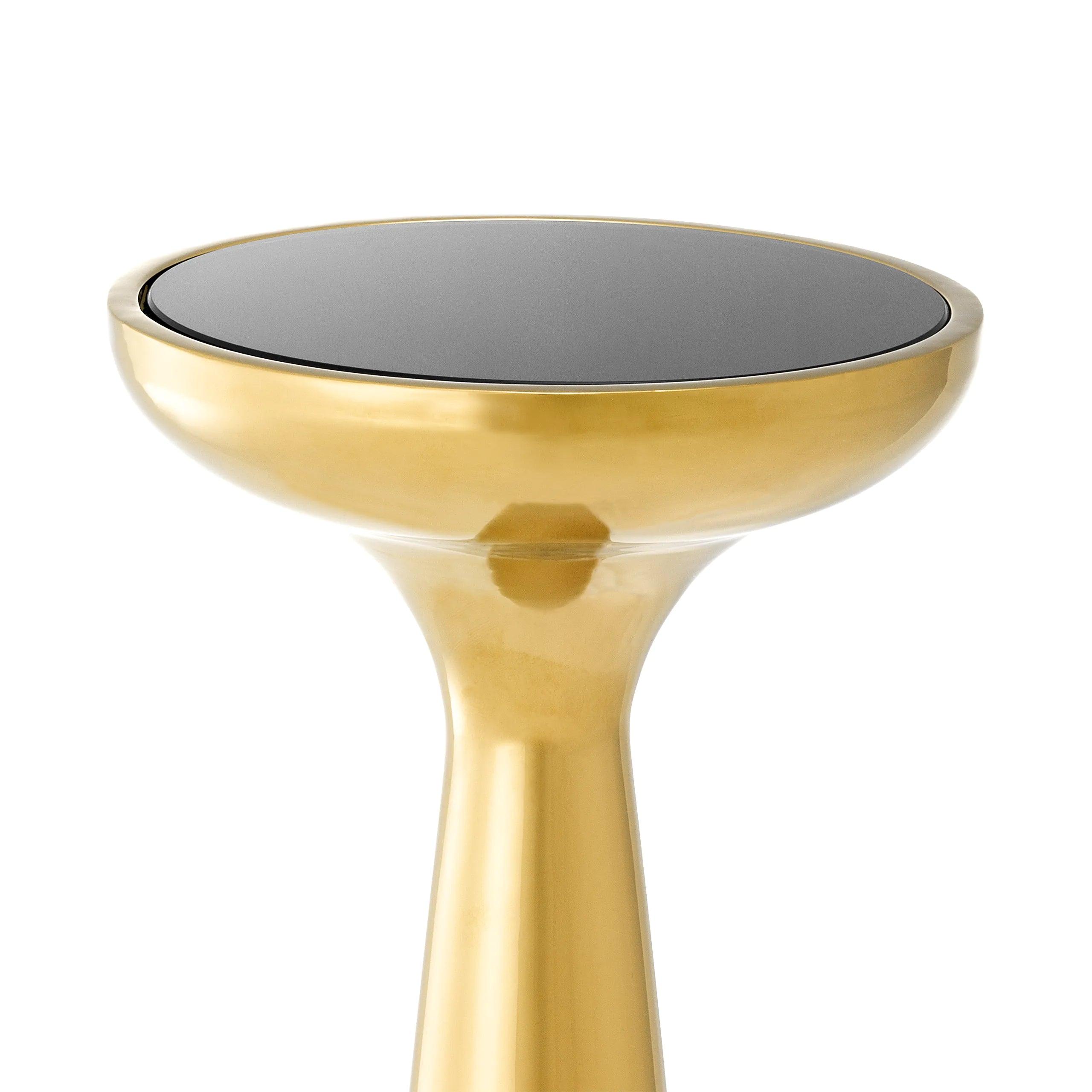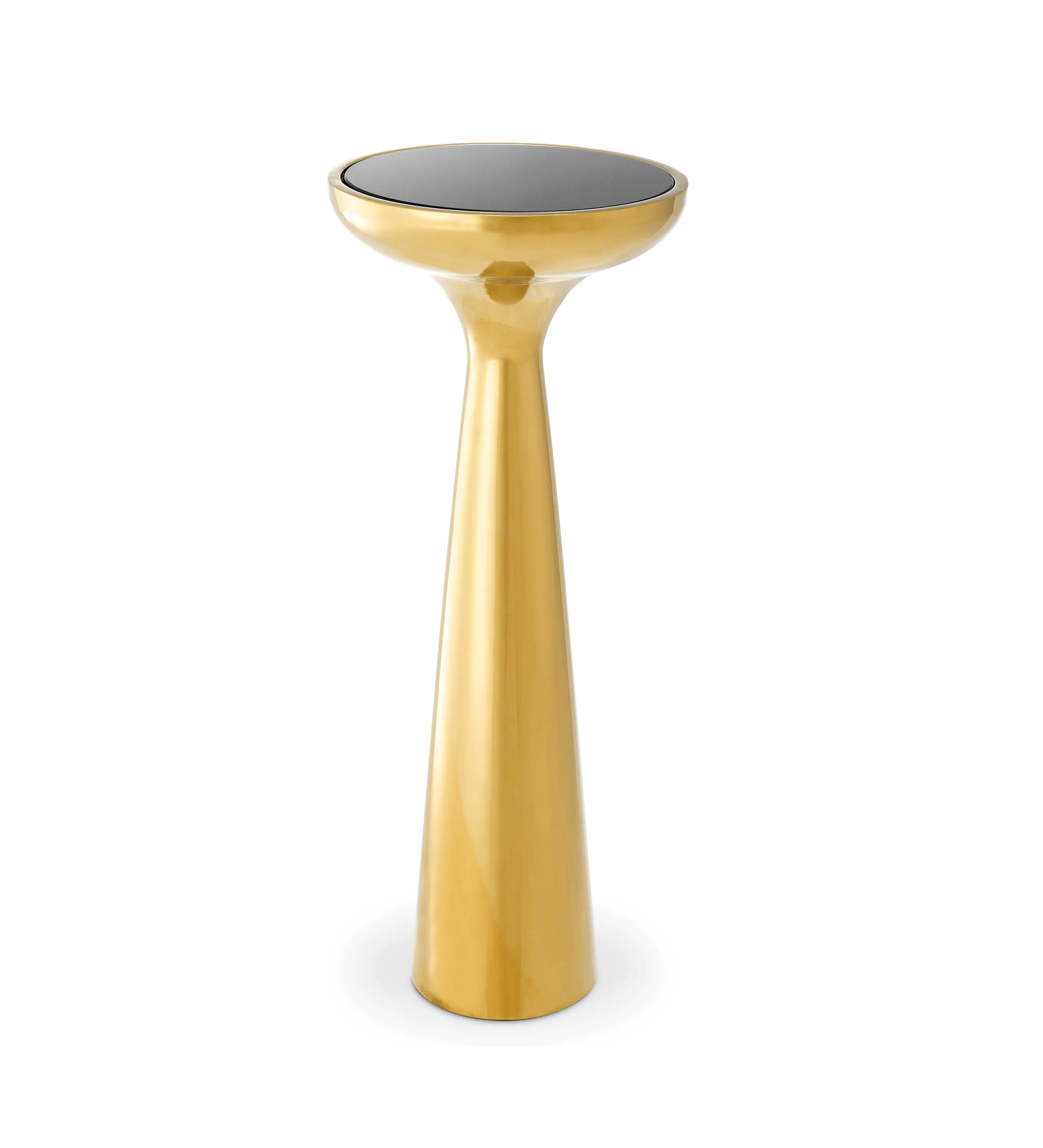 Bočný stolík Lindos je esenciou škandinávskej elegancie, ktorá spája funkčnosť a nadčasový dizajn. Jeho organický tvar a ohromujúce spojenie zlata s čiernym skleneným vrchom robia z neho nielen praktický prvok vybavenia, ale aj výnimočný dekoratívny akcent v každom interiéri.