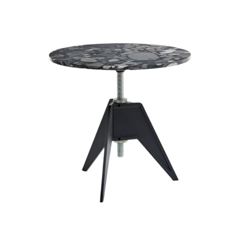 Bočný stolík Screw je jednoduchý a funkčný nábytok, inšpirovaný materiálmi a procesmi priemyselnej revolúcie. Je vybavený otáčacou doskou, upevnenou na oceľovom, závitovom prúte, čo umožňuje reguláciu výšky. Je robustný, odolný a elegantný, čo z neho robí ideálny kúsok do interiérov aj exteriérov.