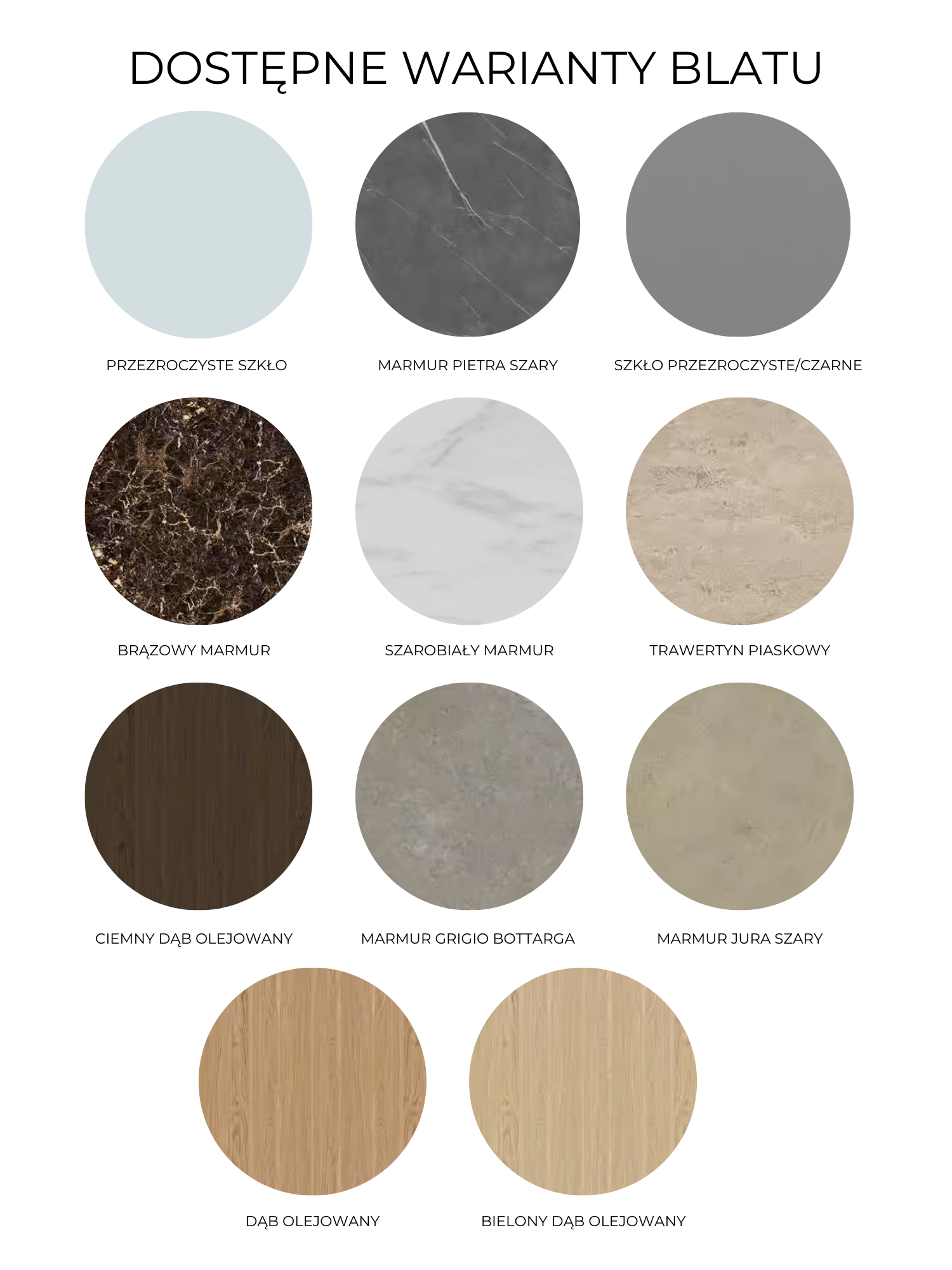Materiał: stalowa podstawa, marmur / trawertyn / szkło