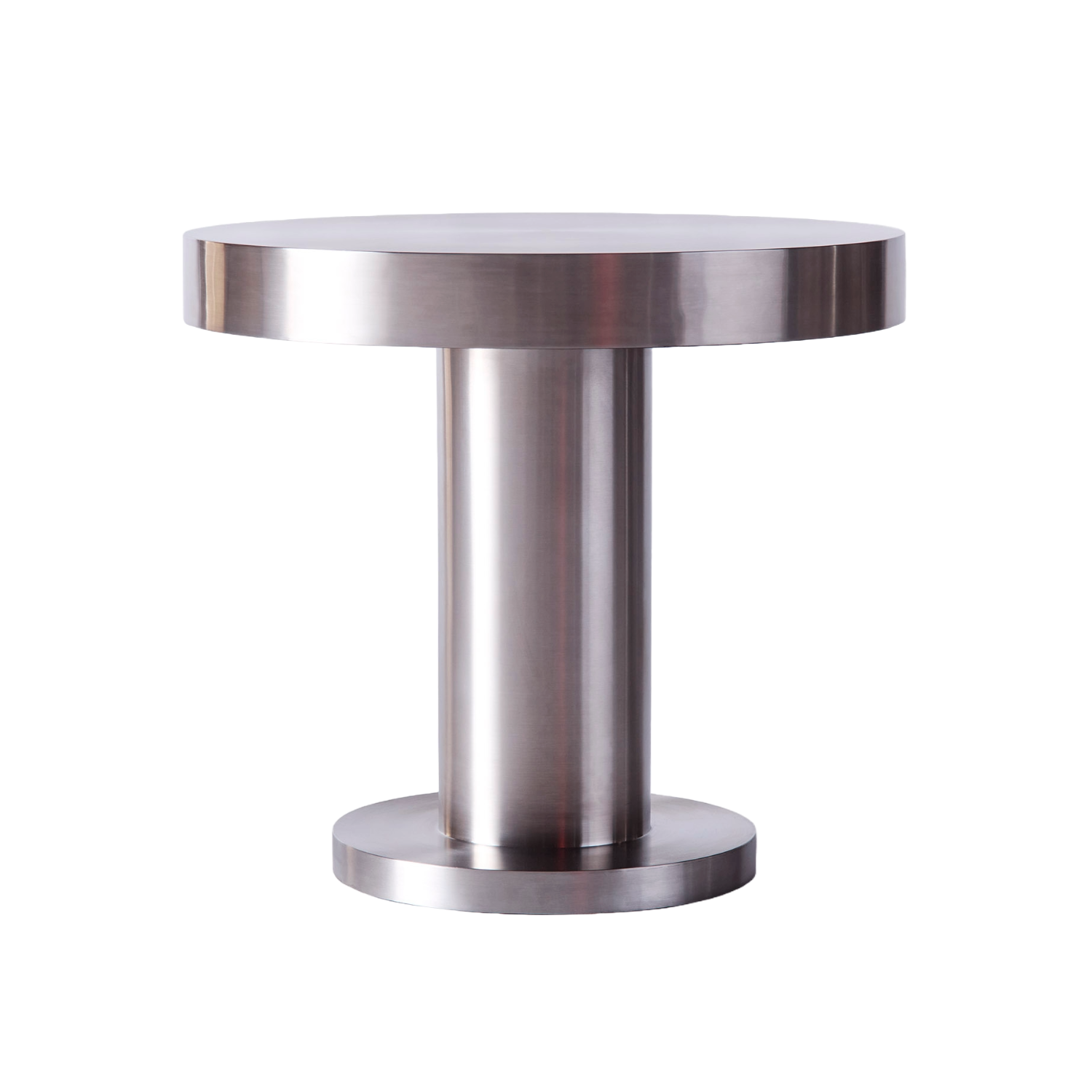 Kávový stolík Cufflink je výrazný kus nábytku s moderným charakterom, ktorý okamžite pritiahne pozornosť svojím sochárskym dizajnom. Vyrobený z leštenej nehrdzavejúcej ocele, spája minimalistickú formu a industriálnu eleganciu. Jeho masívny, cylindrický podstavec a hladká doska tvoria harmonický celok, ideálny do moderných interiérov.