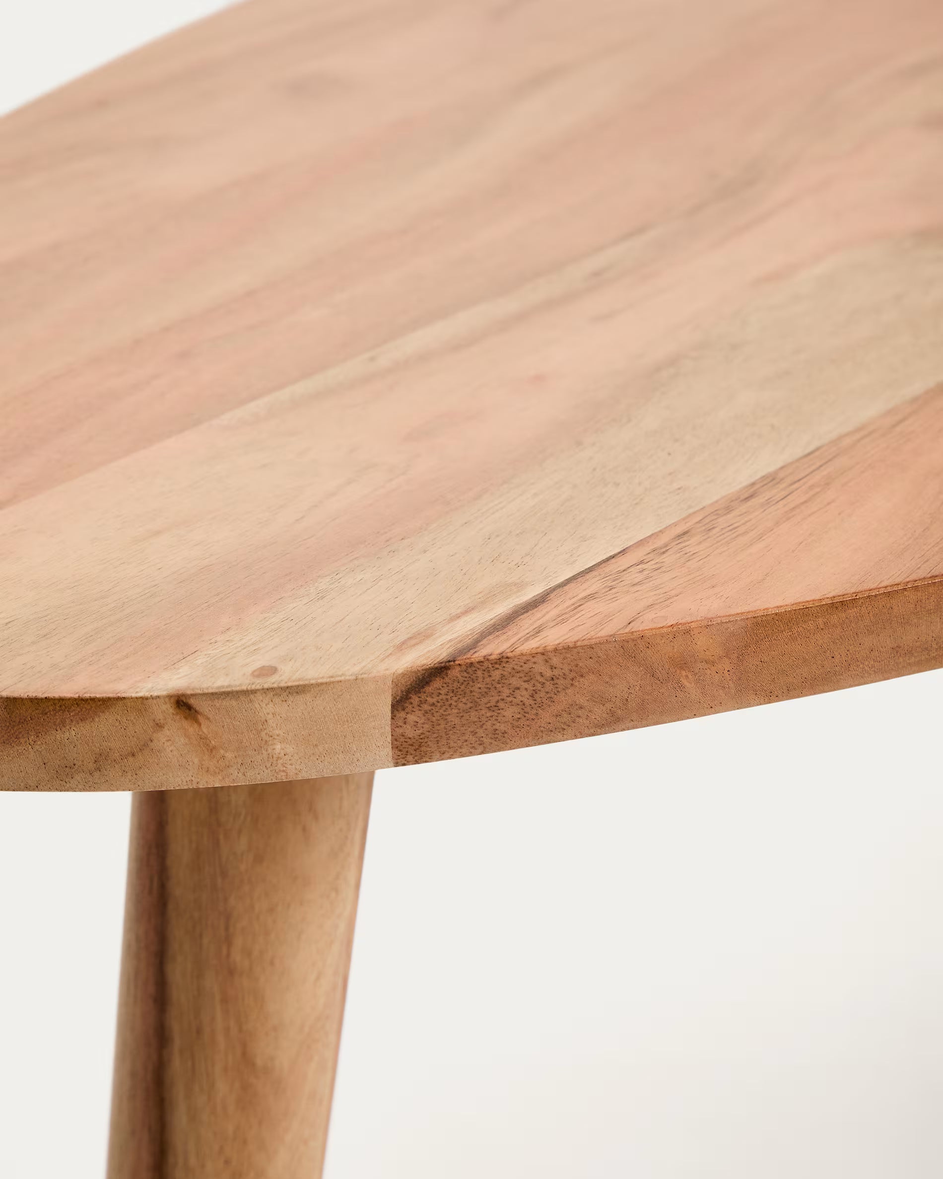 Výnimočný konferenčný stolík Duvani z masívneho akáciového dreva s bieleným povrchom je elegantný a nadčasový kus nábytku, ktorý sa dokonale hodí do interiérov inšpirovaných škandinávskym štýlom a moderným minimalizmom. Jeho jemná forma a vyvážené proporcie dodávajú priestoru harmóniu a ľahkosť, a zároveň prinášajú prirodzené teplo a útulnosť.