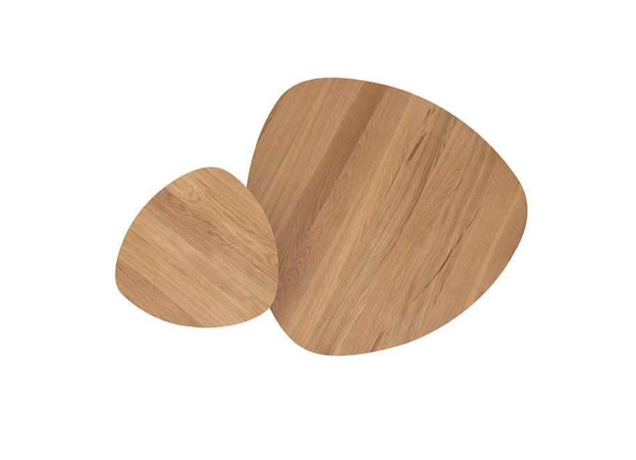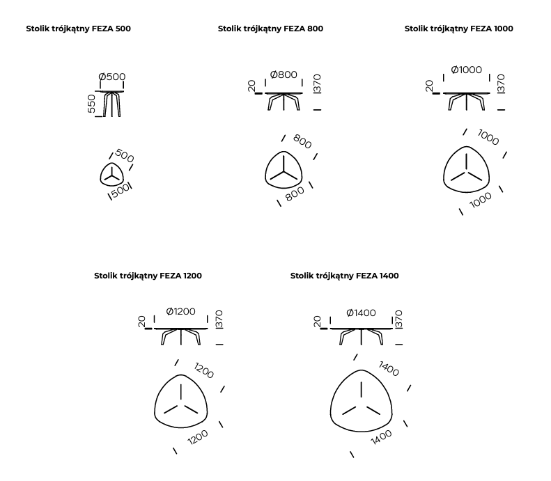 Kolekcja stolików Feza opiera się na metalowej konstrukcji przypominającej nogi pająka, która wspiera blat z drewna dębowego. Fazowany pod kątem blat doskonale współgra z podstawą, tworząc spójny i unikalny wygląd. Stolik dostępny jest w kilku różnych kształtach, co pozwala nadać wnętrzu charakter i indywidualność.