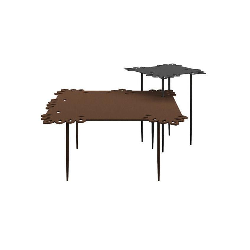 Kávový stolík Flat Lace, ktorý v sebe spája kov s jemnosťou dekoratívneho prvku, oživuje priestor ľahkým, romantickým a dynamickým akcentom. Tento výnimočný kus nábytku dokonale zapadne do akéhokoľvek prostredia, pričom mu dodáva nezvyčajné čaro.
