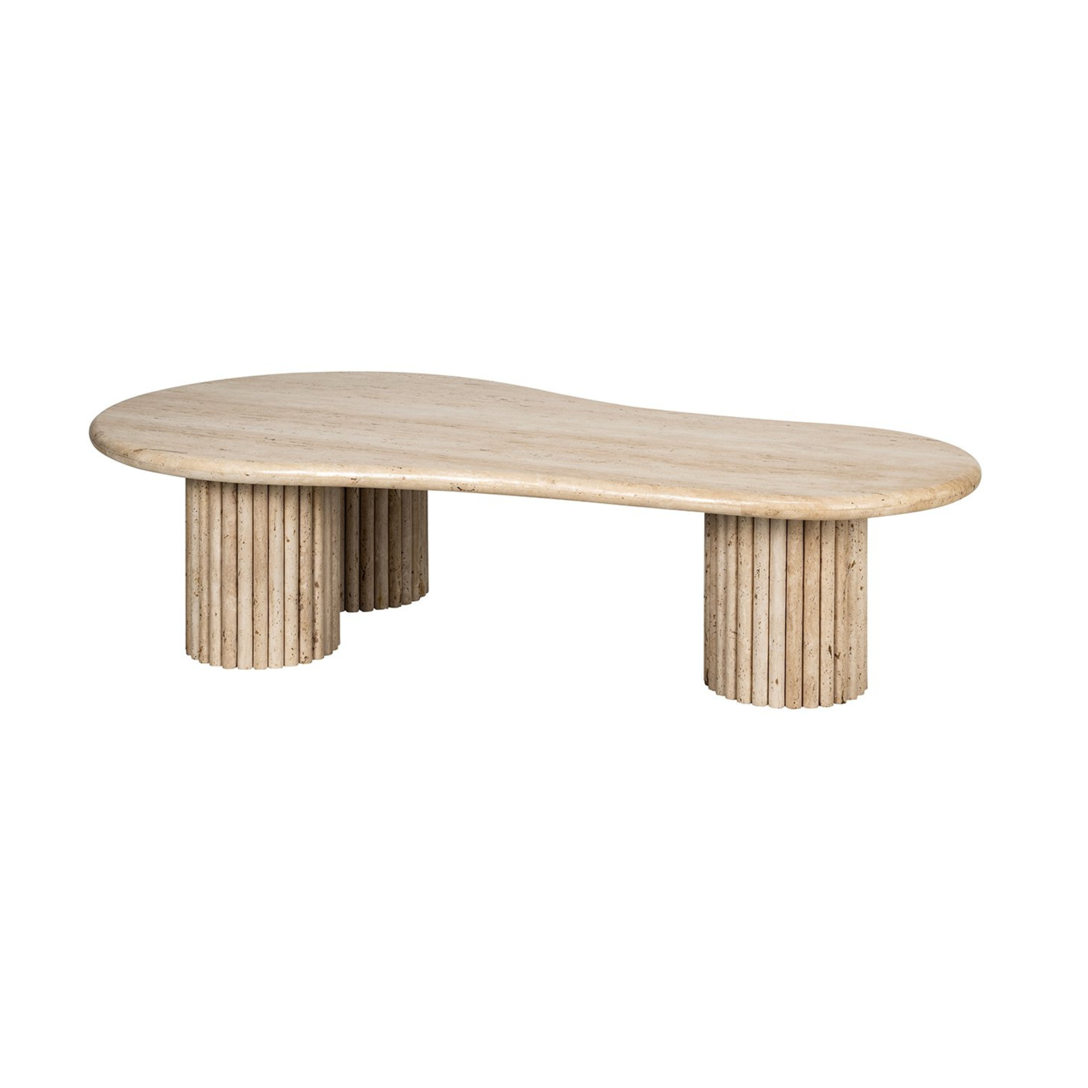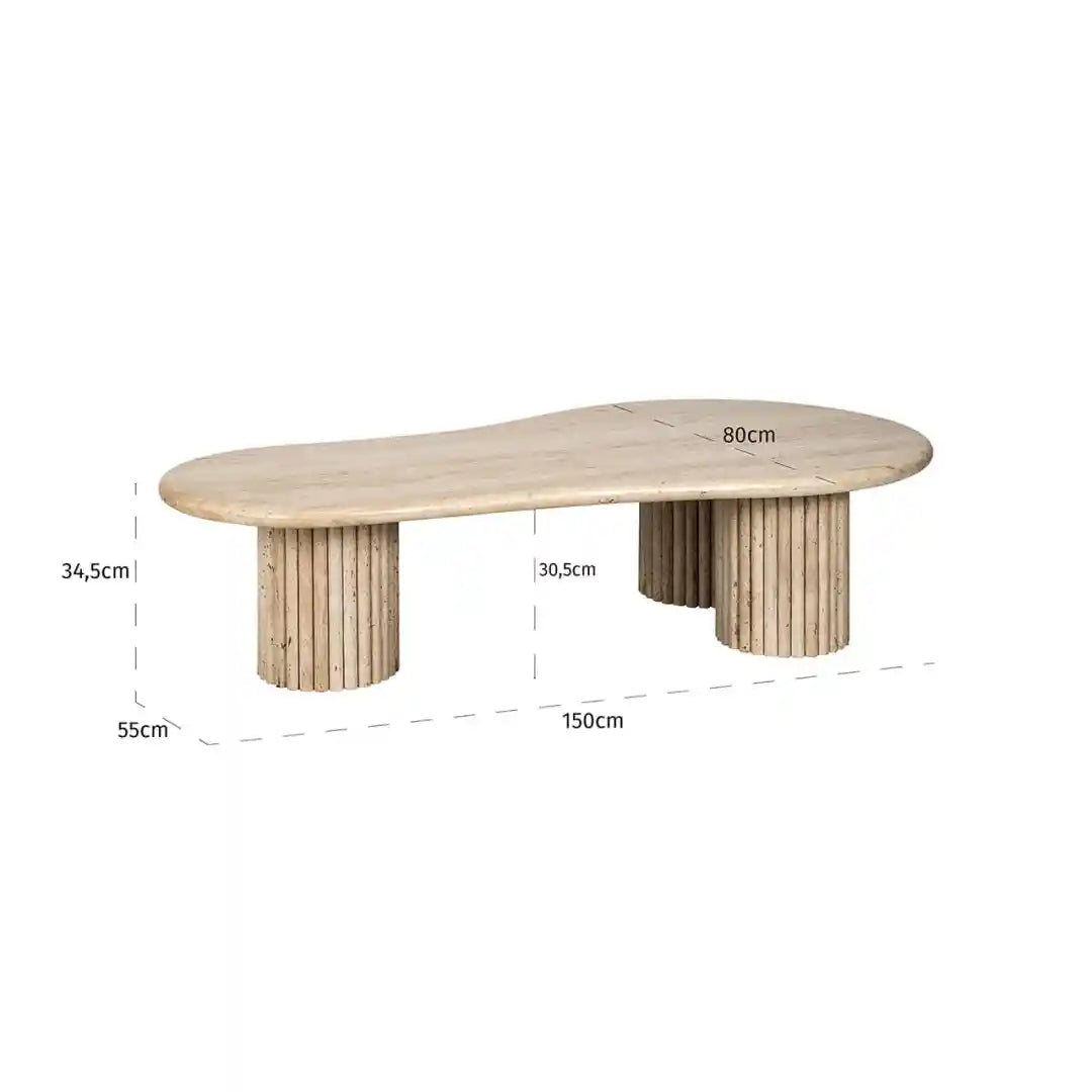Kávový stolík La Cantera je výnimočný kus nábytku, ktorý prináša do obývacej izby luxus a eleganciu. Vďaka organickému tvaru a jednotnému vzhľadu travertínu vytvára prirodzený a nadčasový efekt, ktorý sa dokonale hodí k rôznym aranžmánom interiérov. Vyrobený z kvalitných materiálov, kávový stolík sa stáva centrálnym bodom priestoru, priťahujúc pozornosť svojím jemným, a zároveň rafinovaným charakterom.