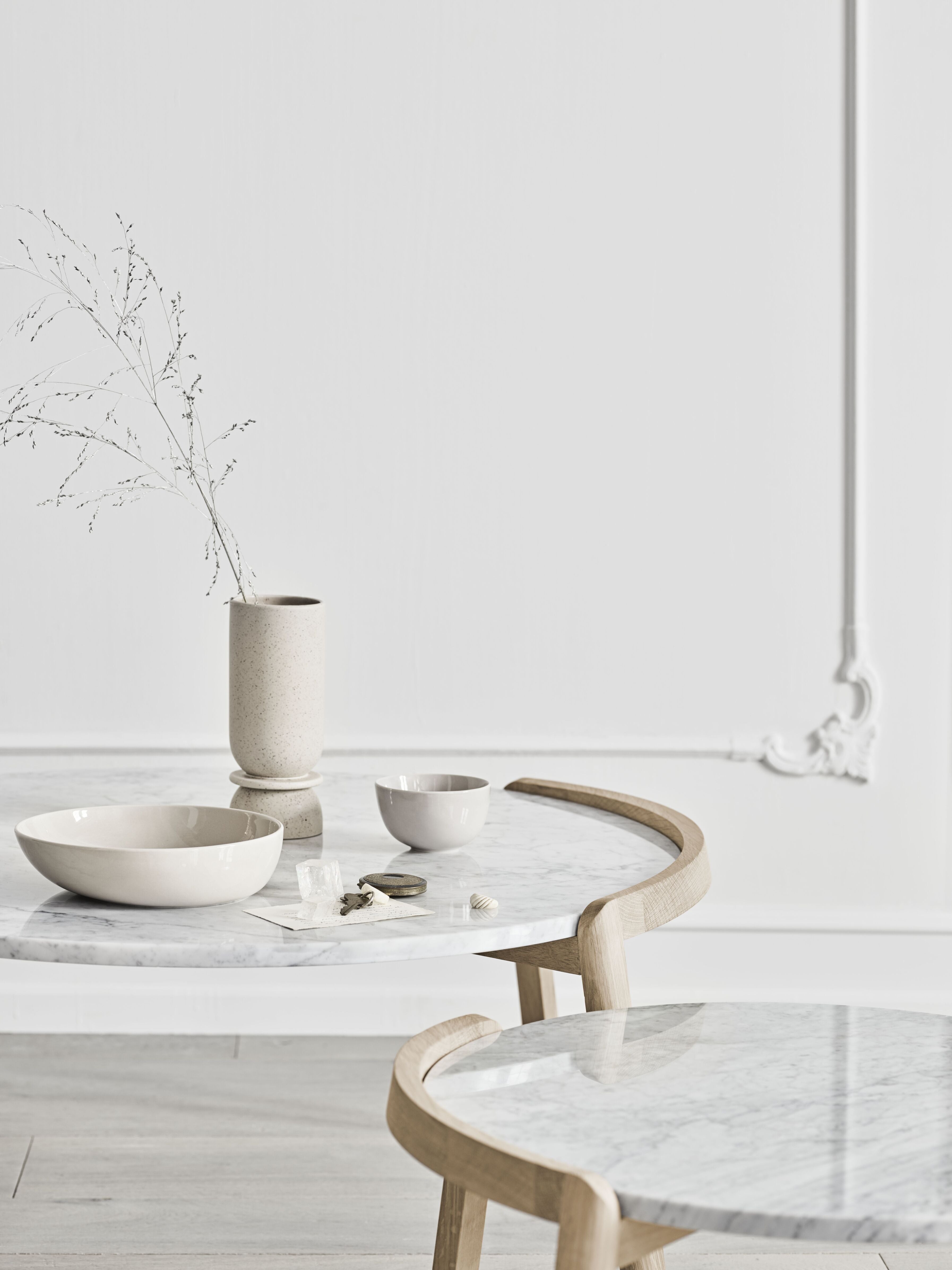 Kávový stolík Mix je elegantný a originálny kus nábytku, ktorý spája rôzne materiály do harmonického celku. Pevný podstavec vyrobený z certifikovaného dubového dreva FSC® zabezpečuje trvácnosť a stabilitu, zatiaľ čo jemná hra kontrastov dodáva stolíku nadčasový charakter. Doska, navrhnutá s ohľadom na funkčnosť a estetiku, sa dokonale kombinuje s prírodným povrchom duba, čím vytvára štýlový akcent v každom interiéri. Navrhnuté štúdiom Gud z Portugalska.