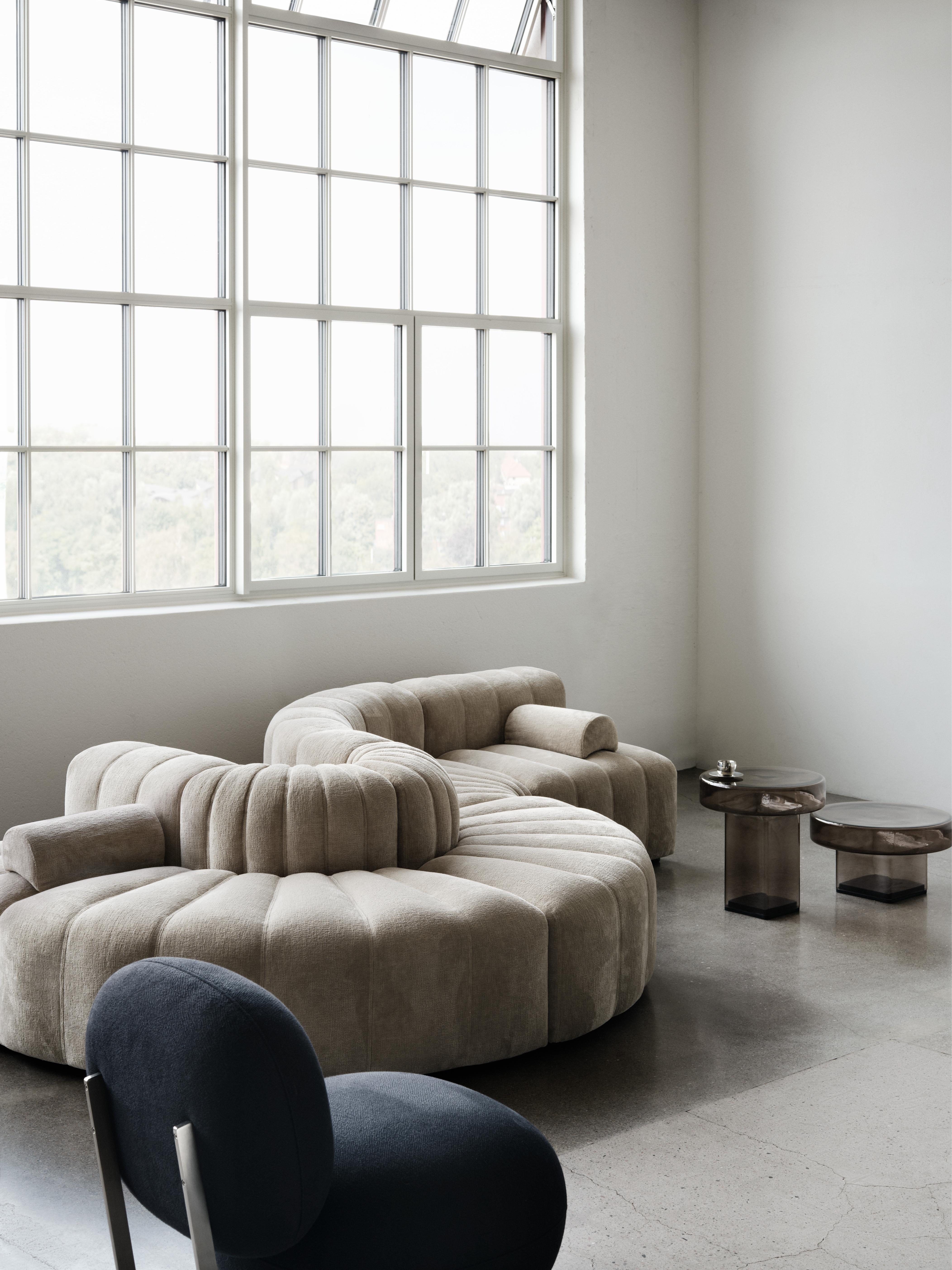 Kávový stolík Naked je spojenie sochárskej formy a jemnosti skla. Jeho zhrubnutý, okrúhly vrch spočíva na masívnej, stĺpovej základni, čím vytvára odvážnu, no zároveň ľahkú konštrukciu. Každý sklenený kávový stolík je vyrobený z jedného kusu ručne fúkaného skla, čo z neho robí jedinečné dielo remesla. Proces výroby zahŕňa formovanie roztaveného skla v špeciálnej forme, jeho nadfúknutie, temperovanie a presné orezanie, aby sa dosiahla ideálna stabilita.