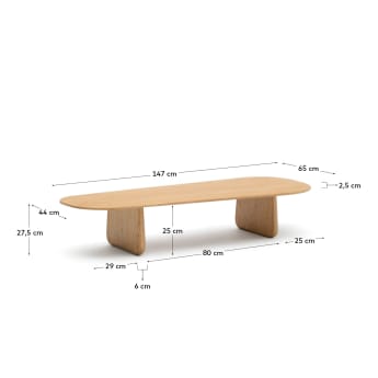 Drevo použité na výrobu stolíka je certifikované FSC™, čo zaručuje, že pochádza z zodpovedného lesného hospodárstva. Spojenie so stolíkom pomocníkom vytvára funkčnú súpravu s dvoma rôznymi výškami, ideálnu pre moderné interiéry. Stolík je dostupný aj v iných farbách a veľkostiach, čo umožňuje prispôsobenie rôznym aranžmánom.