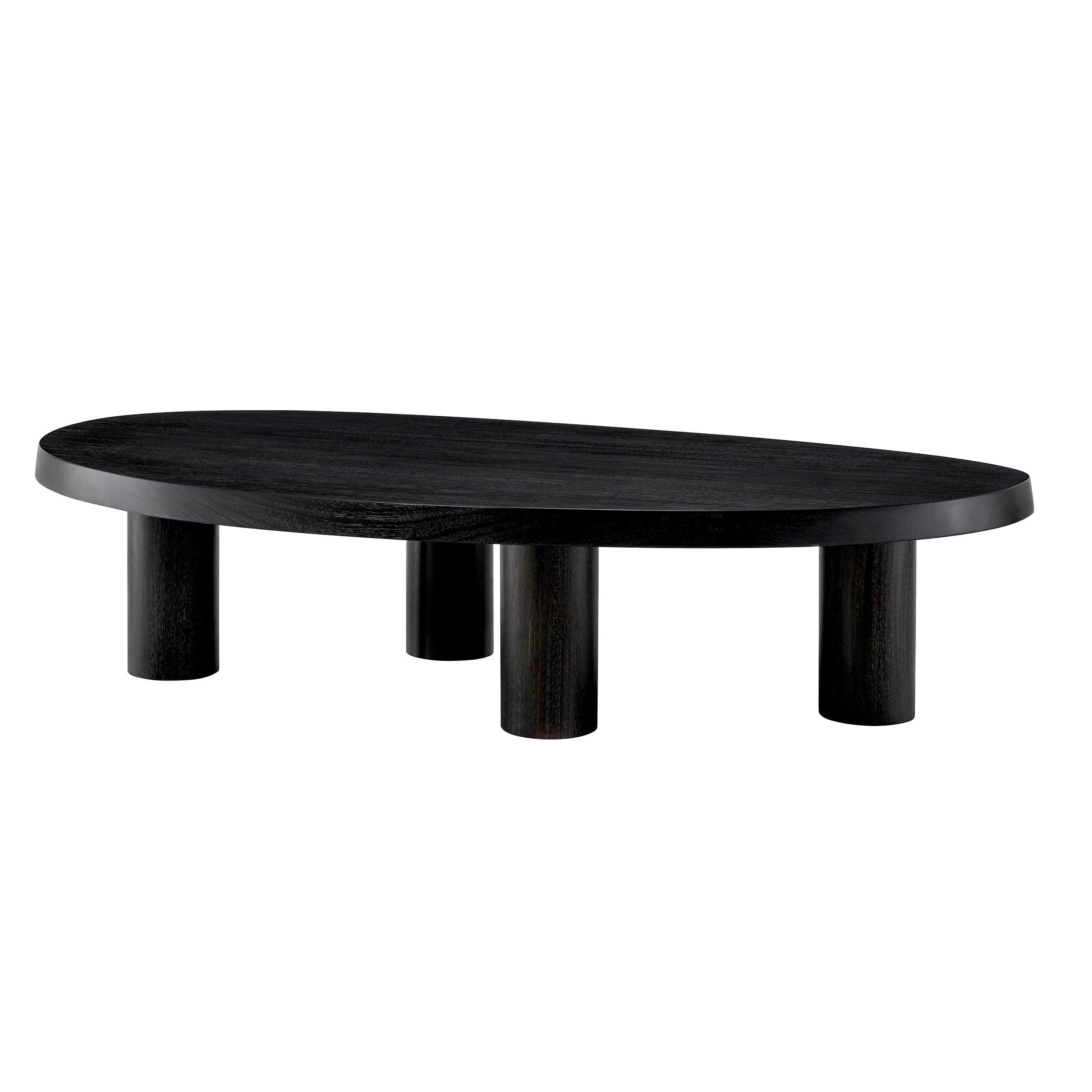 To, čo okamžite upúta pozornosť, je jedinečný dizajn čierneho stolíka. Jeho voľný tvar je zároveň jednoduchý a zaujímavý, predstavujúc osviežujúce odklonenie od konvenčných foriem. Výrazné štyri nohy stolíka nie sú umiestnené tak, ako to poznáme z väčšiny kávových stolíkov. Namiesto toho, ich pozícia a uhol sklonu dodávajú nábytku dynamiku a pocit ľahkosti, napriek pevnému materiálu, z ktorého je vyrobený.