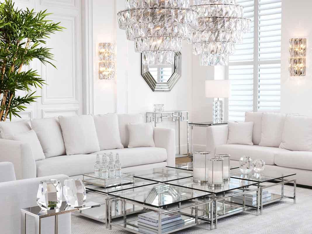 Pokročilý, no jemný rám strieborného stolíka, vyrobený z lesklej leštenej nehrdzavejúcej ocele, sľubuje trvácnosť a odolnosť. Priehľadná sklenená doska nielenže zdôrazňuje jeho modernosť, ale tiež umožňuje vidieť každý detail konštrukcie. Spodná polica, vyrobená zo zrkadlového skla, pridáva hĺbku a dodatočný priestor na uskladnenie, pričom zároveň podčiarkuje elegantný charakter stolíka.