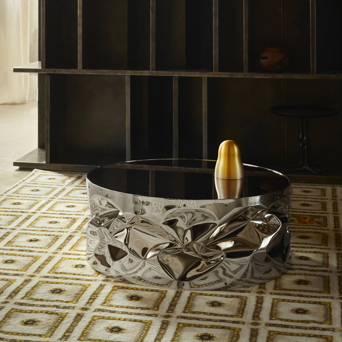Tab.Ulone je pôsobivý konferenčný stolík na kolieskach, navrhnutý Brunom Rainaldim, ktorý spája surovú formu s rafinovaným povrchom. Charakteristický, ručne tvarovaný povrch z hliníka v kombinácii so zrkadlovým vrchom vytvára jedinečný svetelný efekt, ktorý priťahuje pohľady a pridáva eleganciu každému interiéru. Ideálne sa hodí do moderného obývacieho priestoru, ako aj do klasického interiéru, kde sa stane subtílnym, ale výrazným akcentom.
