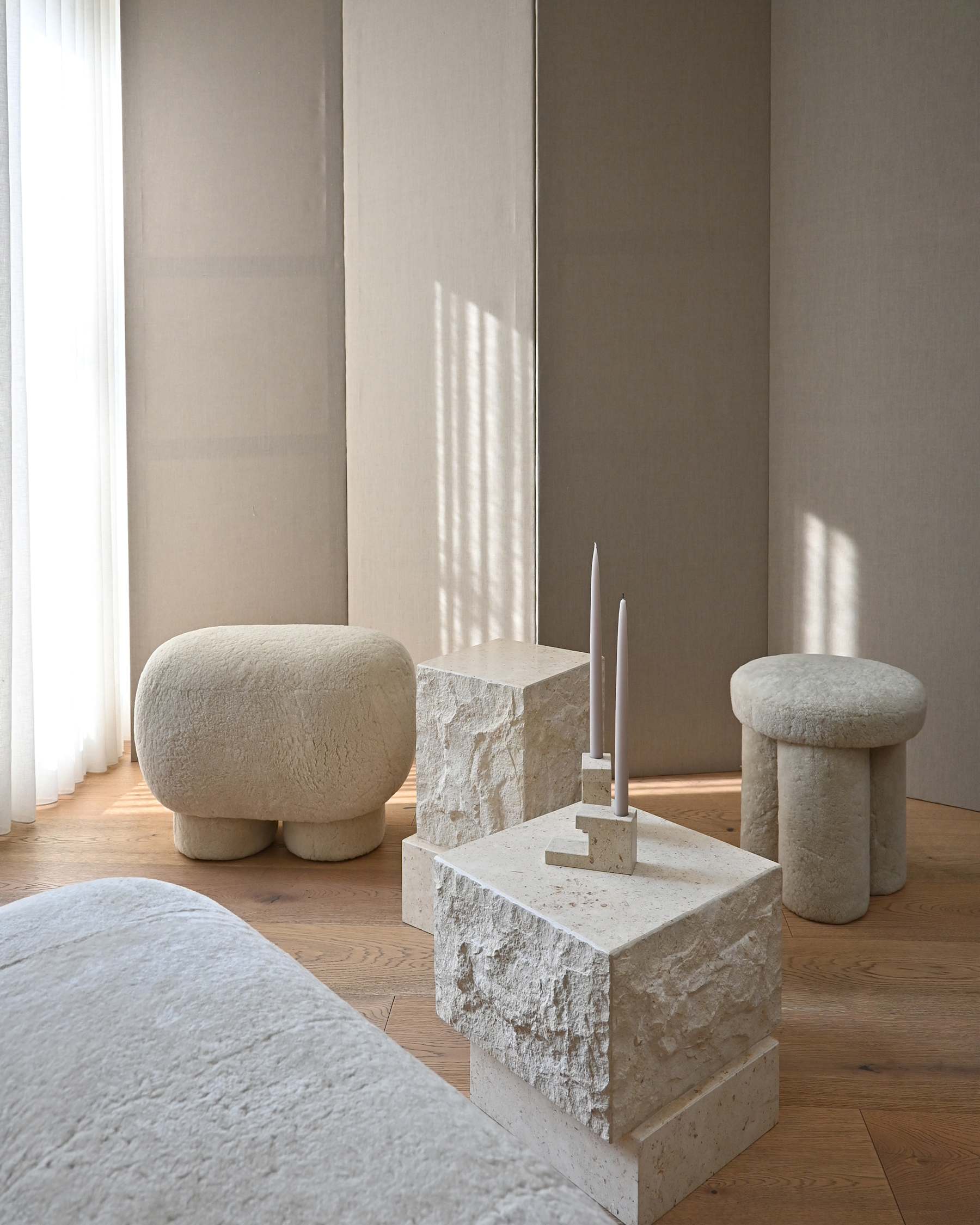 stolik kávový Chrám to sochárska forma inšpirovaná fasádami architektonickými, ktorá uchvacujúce svojou jednoduchosťou a noble materiálu. Vyrobený s pieskovobéžového vápenca, súčasťou sa s dvoch posunutých vo vzťahu seba blokov, tvorí dynamickú a zároveň vyváženú tvar. Jemne ručne vyrezávaný povrch, plná prírodných prúdy a nepravidelnosti, zdôrazňuje autentickosť kameňa a dáva každému exemplár unikátny charakter.