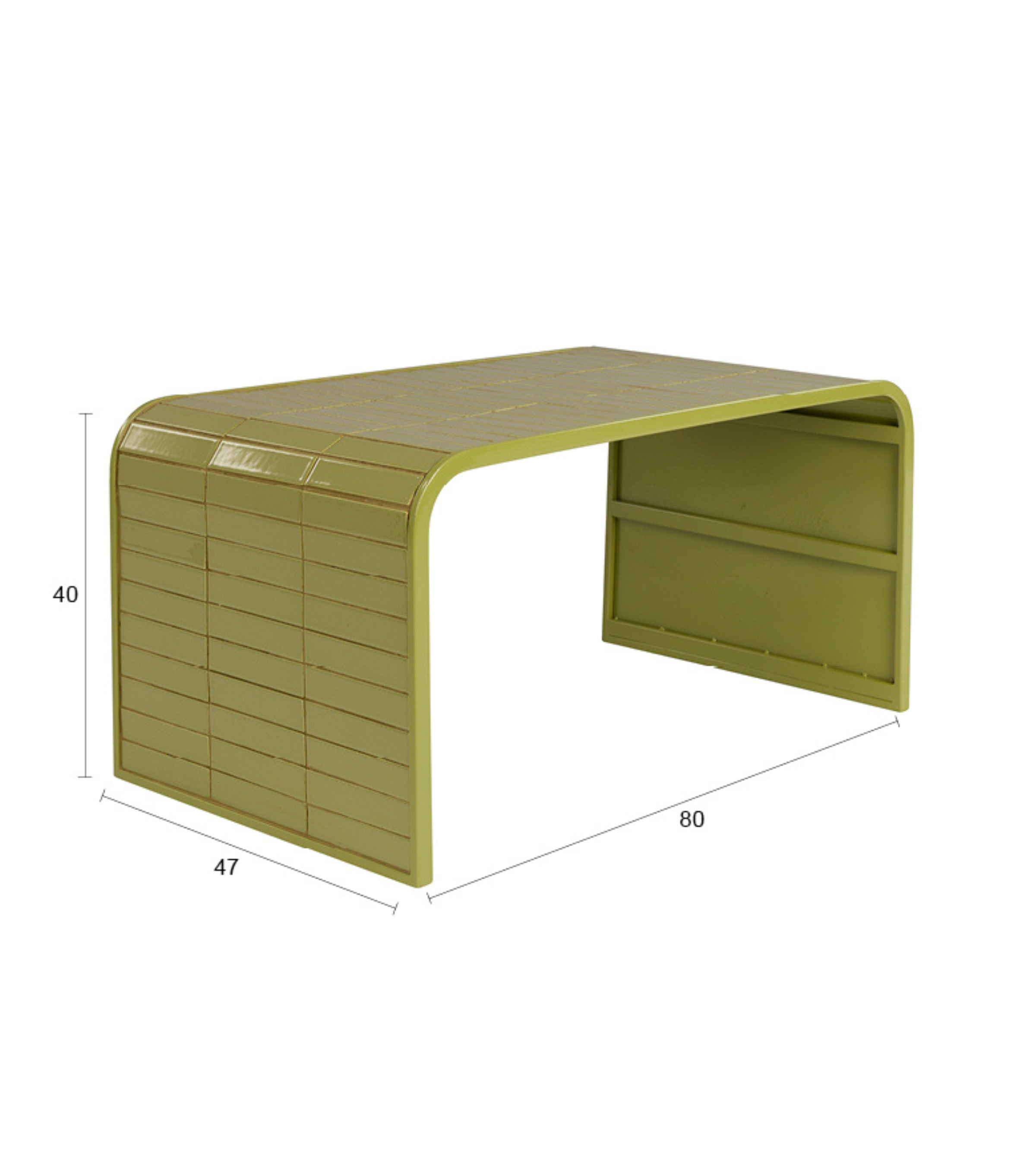 Rám stolíka je vyrobený z kovu s práškovým nástrekom, čo zabezpečuje stabilitu a trvácnosť konštrukcie. Je to ideálny nábytok do moderných aranžmánov, kde sa cení nielen funkčnosť, ale aj odvážne prístupy k forme a farbe.