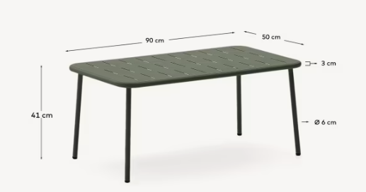 Zivia je záhradný kávový stolík, ktorý očarí svojím jednoduchým, minimalistickým dizajnom a odolnosťou. Jeho oceľová, pozinkovaná konštrukcia v zelenej úprave zabezpečuje vysokú odolnosť voči opotrebovaniu a korózii, vďaka čomu sa skvele hodí do vonkajších aj vnútorných priestorov.