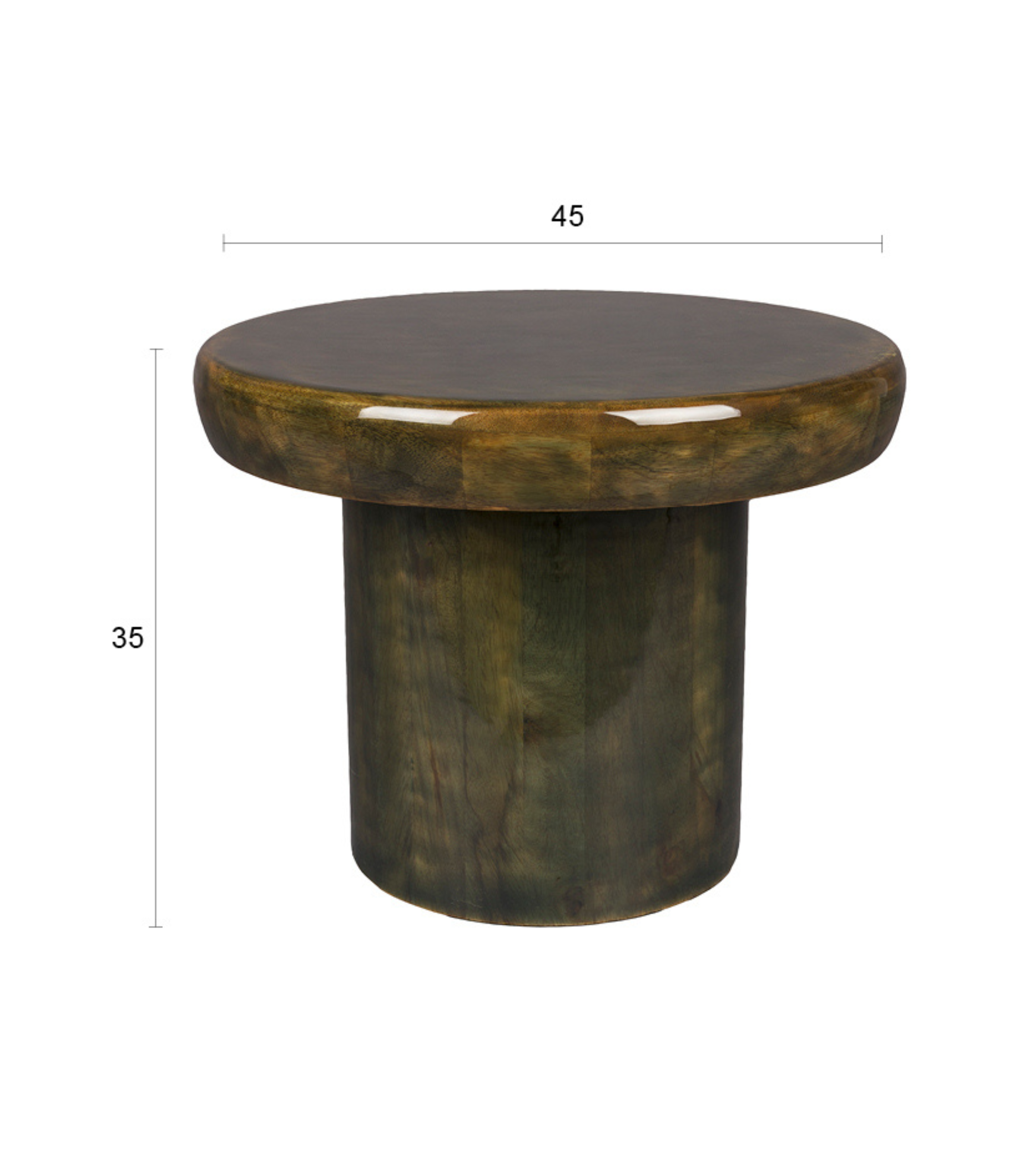 Stolík Mush je návratom do atmosféry 70. rokov, ktorý od prvého pohľadu vyžaruje teplo a nostalgiu. Inšpirovaný tvarom huby, priťahuje pohľady svojou zakrivenou formou a elegantným leskom. Vyrobený z mangového dreva v hlbokom, zelenom odtieni, vytvára prirodzený a útulný akcent v každom interiéri – od klasických aranžmánov po moderné priestory s nádychom retra.