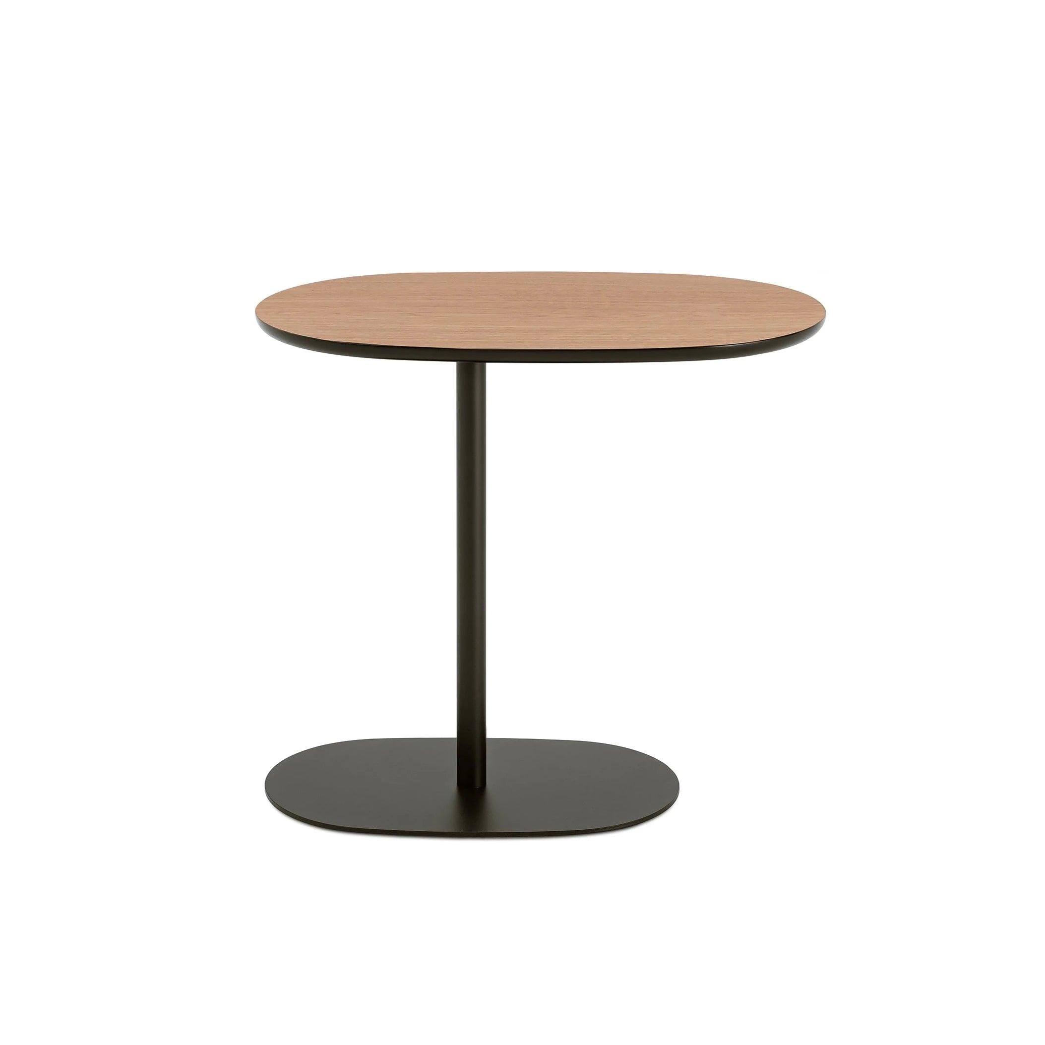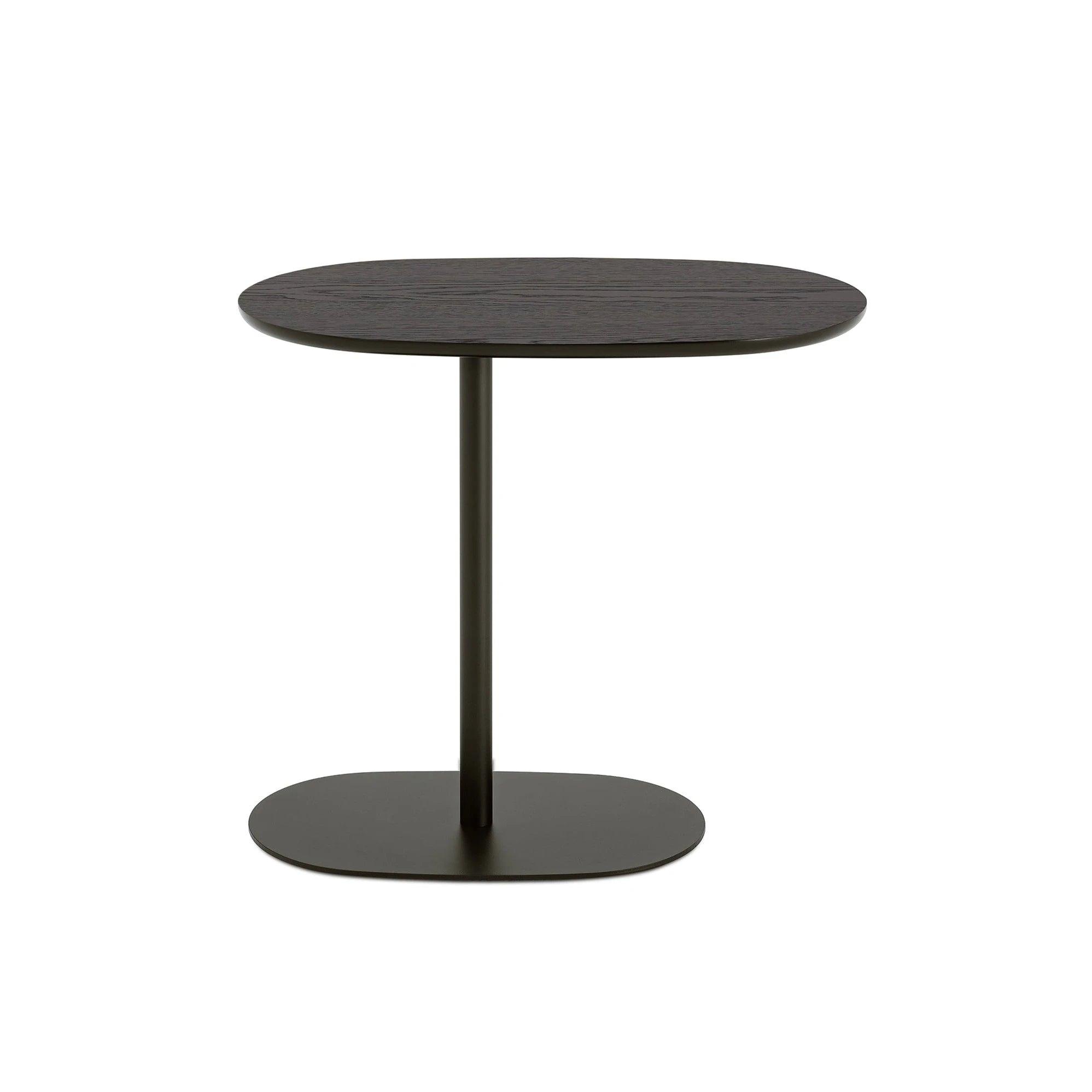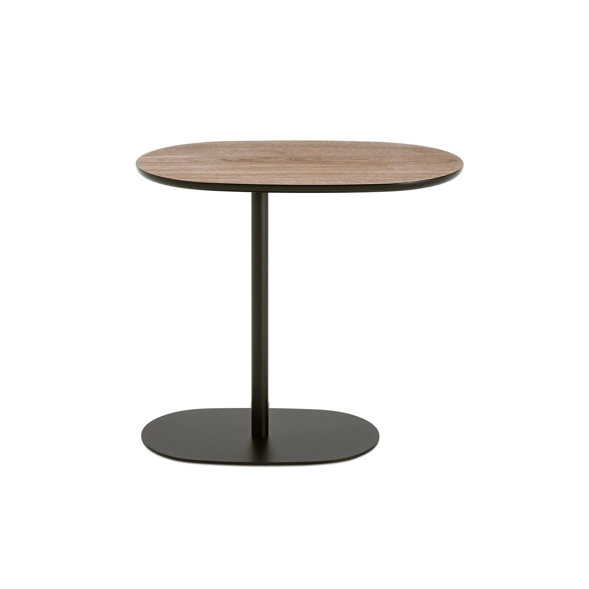 Asymetrické umiestnenie dosky umožňuje priblížiť stolík k sedadlu pohovky, čo ho robí mimoriadne funkčným. Na elegantnej doske z dyhy si môžete pohodlne položiť knihu, šálku alebo laptop.