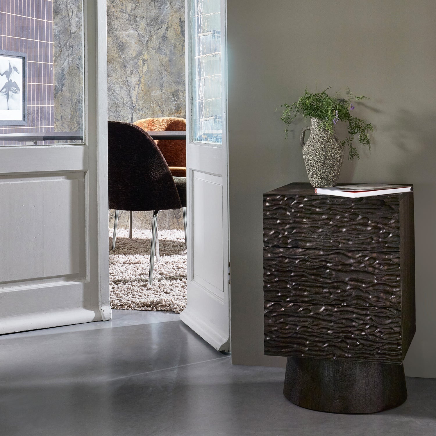Vyrobený z odolného mangového dreva, stôl Crumble sa vyznačuje teplou farebnou paletou a jedinečným vzorom letokruhov a prirodzenými farebnými odtieňmi. Každý kus je jedinečný, čím do spálne prináša nielen funkciu, ale aj charakter. Pre bezpečné používanie sa odporúča upevnenie na stenu.