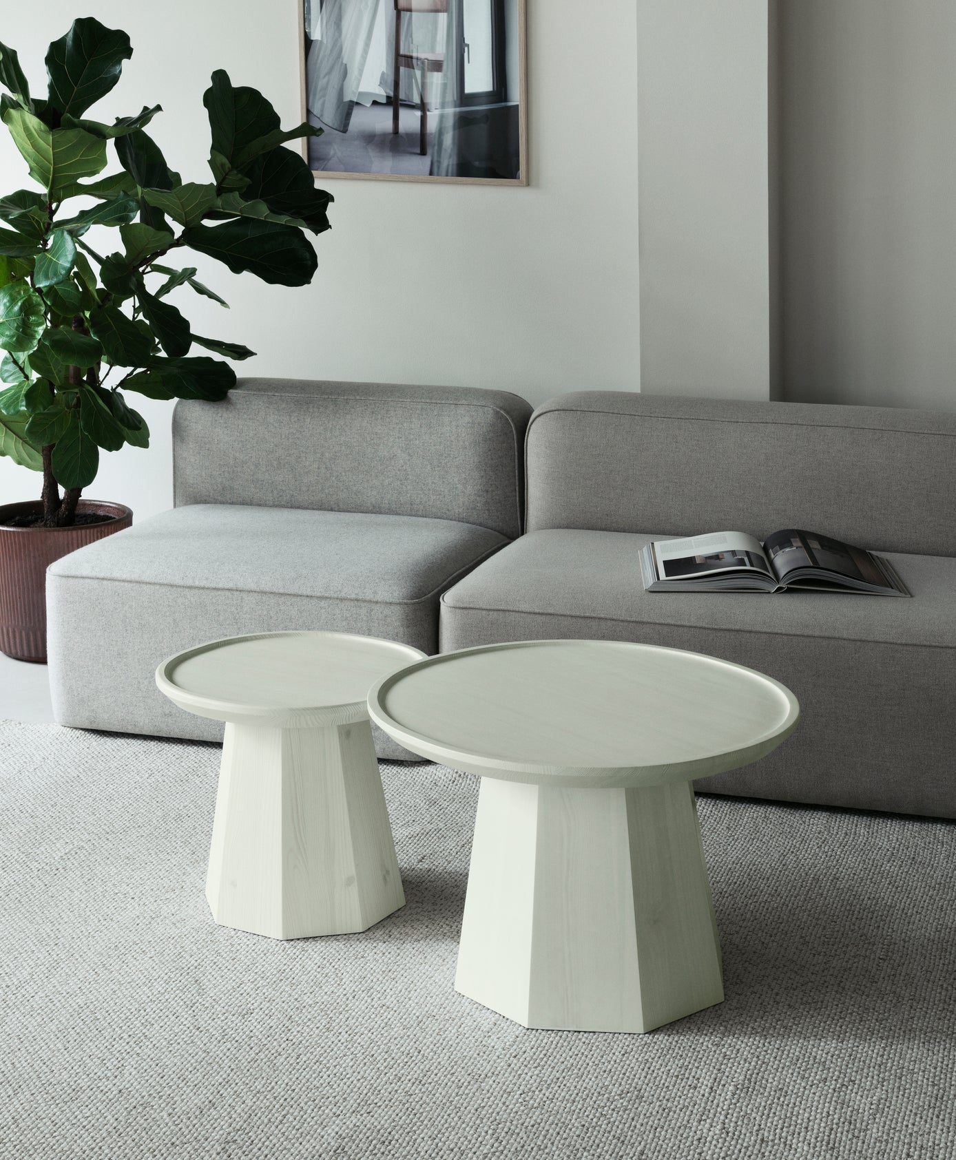 Drevo je pokryté farebným lakom, ktorý zvýrazňuje kresbu letokruhov, pričom ich stále necháva viditeľné. Celok vytvára dojem harmónie medzi surovou formou a elegantným dokončením. Stôl Pine sa dokonale hodí do moderných aj klasickejších interiérov, pričom im dodáva charakter a teplo.