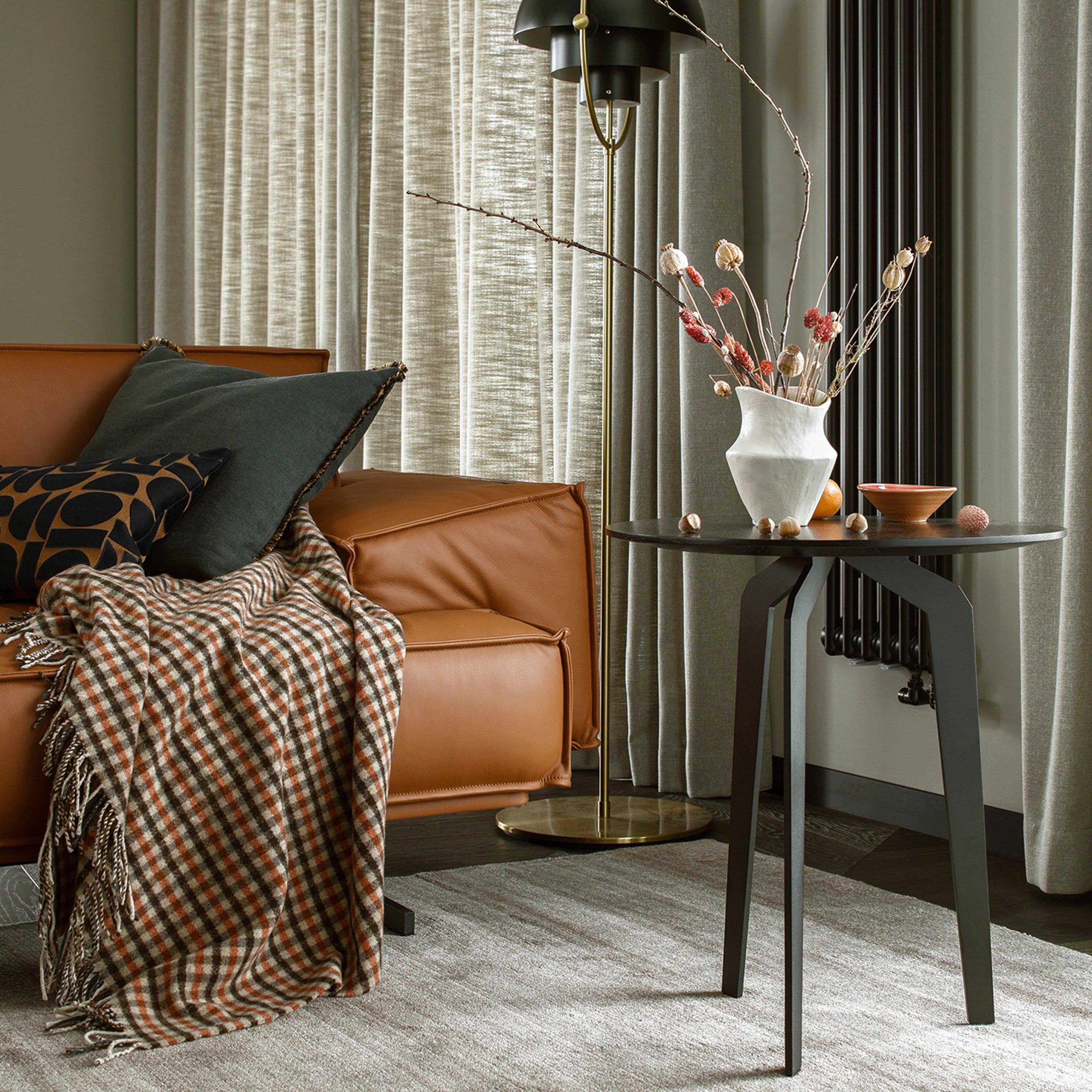 Kolekcia stolíkov Feza sa opiera na kovovej konštrukcii pripomínajúcej nohy pavúka, ktorá podopiera dosku z dubového dreva. Fazovaná doska pod uhlom dokonale ladí s podstavcom, čím vytvára súvislý a jedinečný vzhľad. Stolik je dostupný v niekoľkých rôznych tvaroch, čo umožňuje dodať interiéru charakter a individualitu.