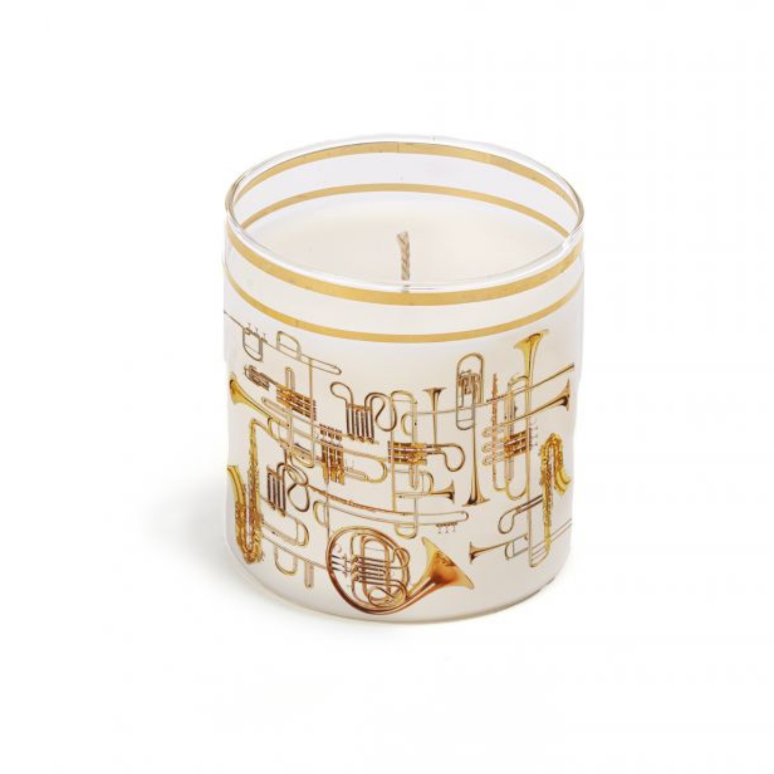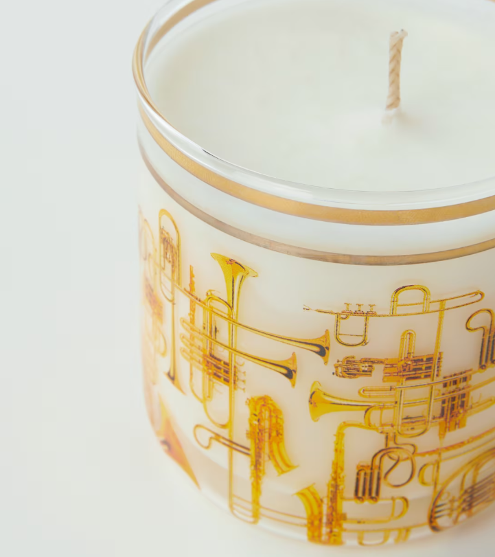 Svietnik Trumpets je elegantný doplnok pre milovníkov hudby a výnimočného dizajnu. Sklenená nádoba zdobená zlatými grafikami trúbky vnáša rafinovaný, umelecký akcent do každého interiéru, ideálne sa hodí do priestoru v klasickom alebo modernom štýle.