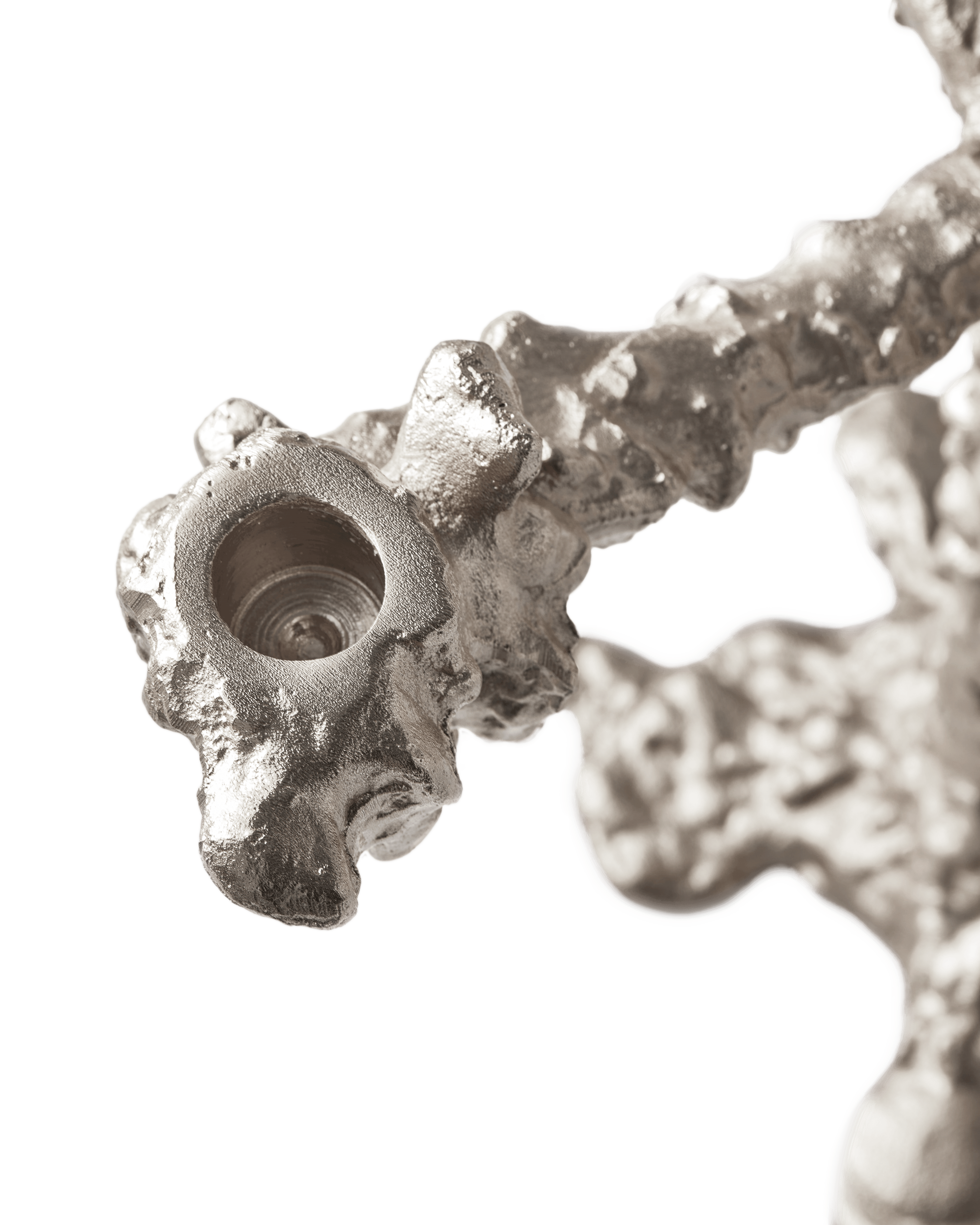 Tento svietnik žiari ako samostatný dekoratívny prvok na krbe a očarí, keď je osvetlený na stole. Každý zákrut a krivka jeho povrchu z platinovaného hliníka je jedinečná, čo z neho robí umelecké dielo navrhnuté autorom, Pascalom Smelikom, ktorého fascinuje deformácia a jedinečnosť. Drip dramaticky vyťahuje svoje ramená a vstupuje na scénu ako majestátna vyvrcholenie vo vašej výzdobe.