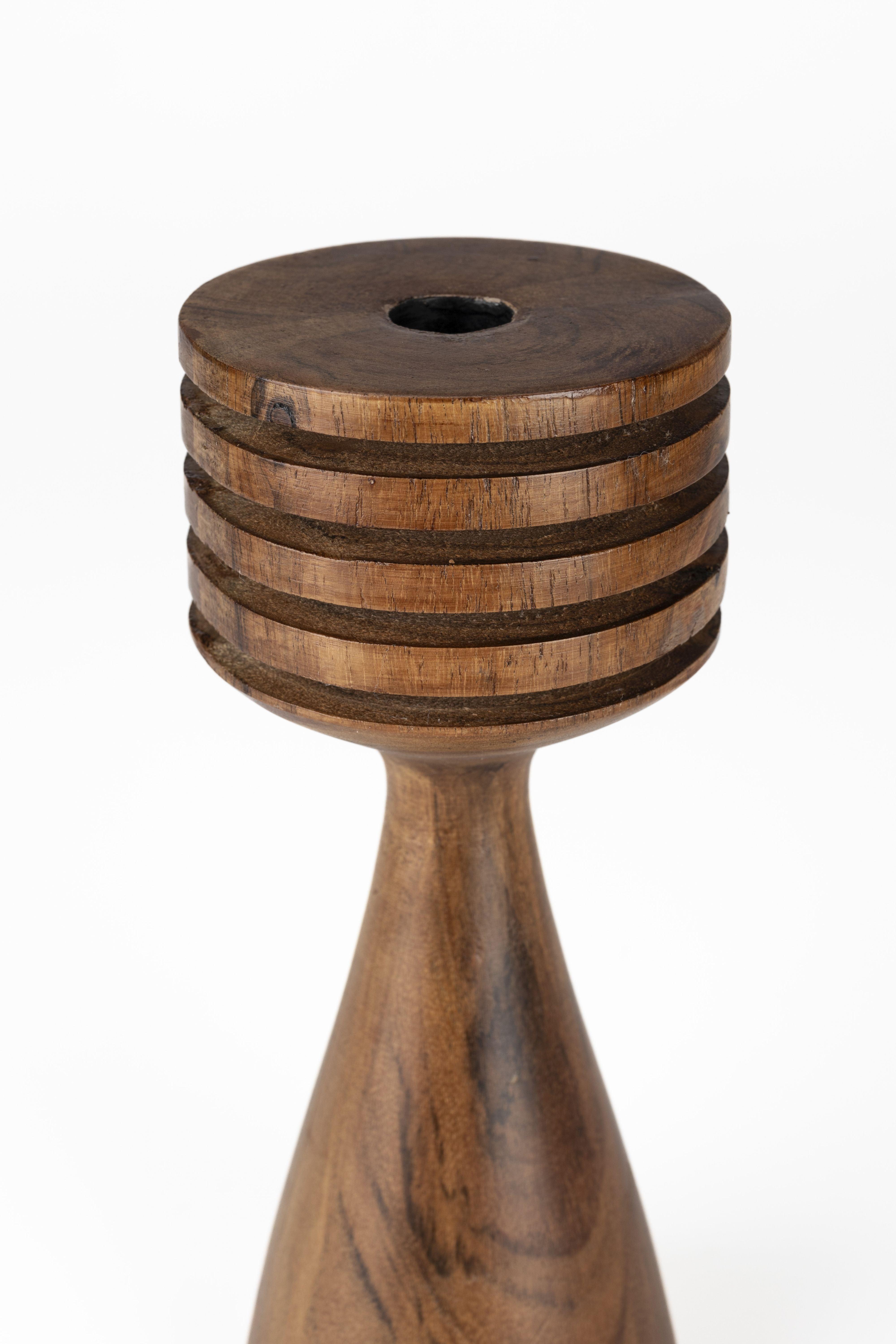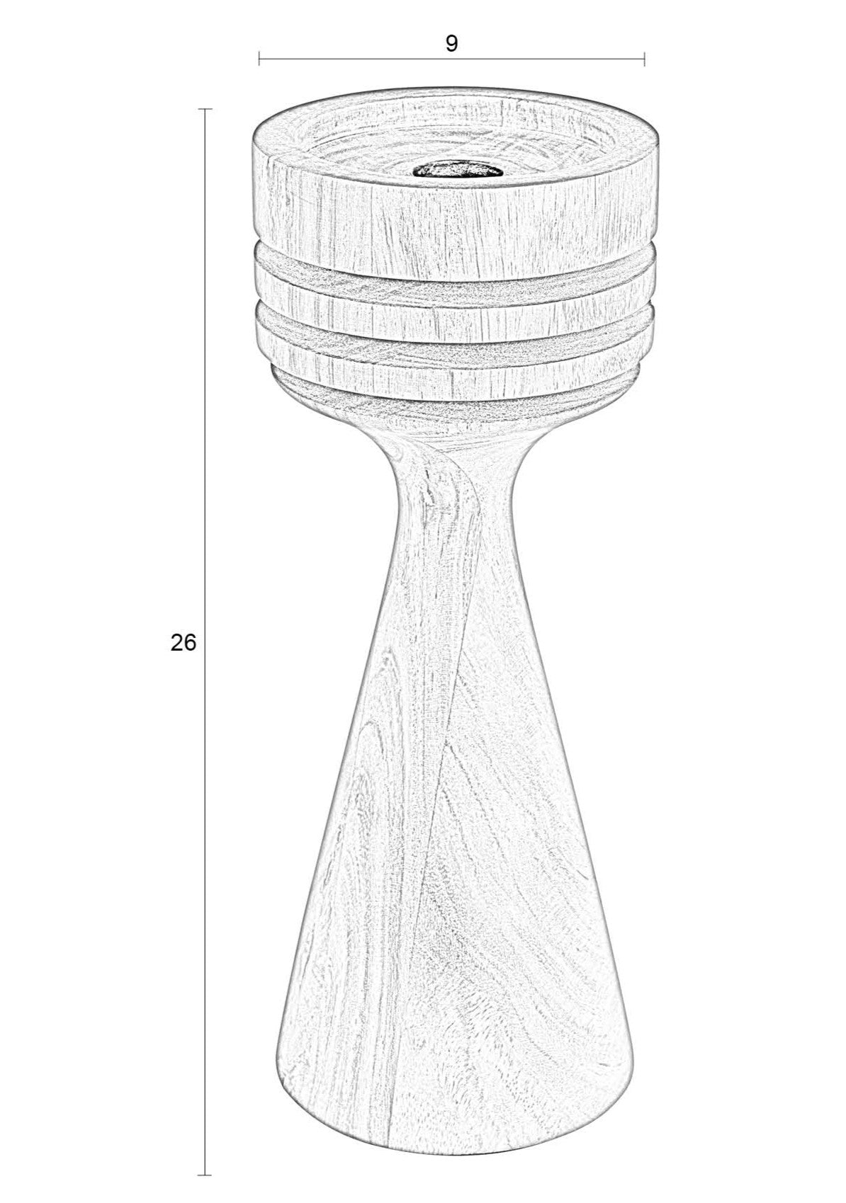 Metalová vložka zabezpečuje stabilitu a bezpečnosť, pričom pridáva aj štipku rafinovanosti k každej príležitosti pri stole. Svietnik Hoover je ideálnym doplnkom k elegantným večeriam a každodenným jedlám, prinášajúc teplo a štýl do každej aranžácie. Nezabudnite, aby ste nedovolili, aby sviečka úplne vyhorela, aby ste predišli poškodeniu dreveného svietnika.