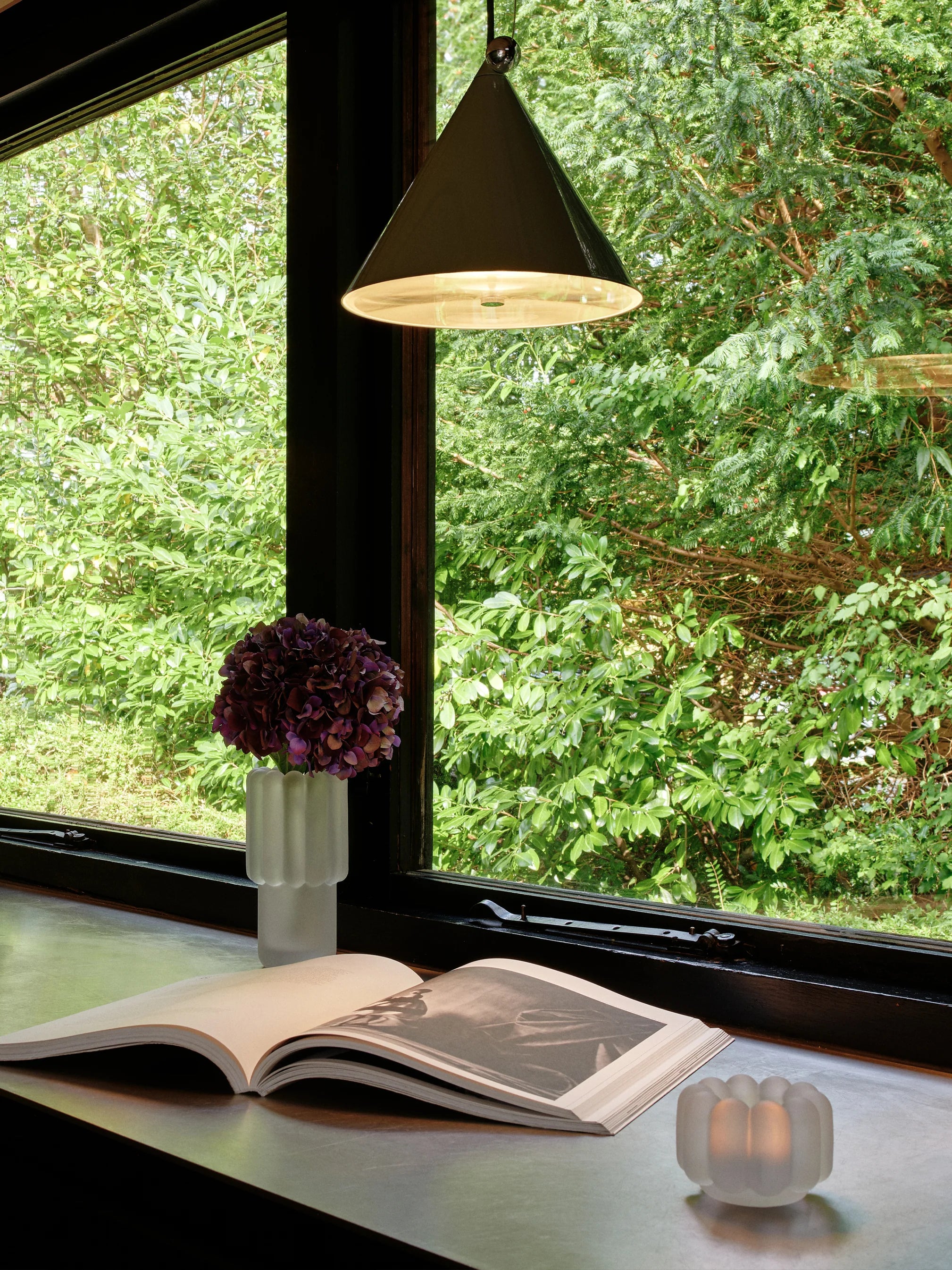 Svietnik Press je malý, ale výrazný objekt, navrhnutý tak, aby zachytával a lámal svetlo, čím vytvára efektné tiene a odrazy. Tento sklenený svietnik je vyrobený z masívneho, ryhovaného skla formovaného z hrubých pruhov čistého materiálu. Odvážna silueta spôsobuje, že dekoratívny svietnik priťahuje pozornosť, či už je zapálený, alebo ako samostatný prvok výzdoby.
