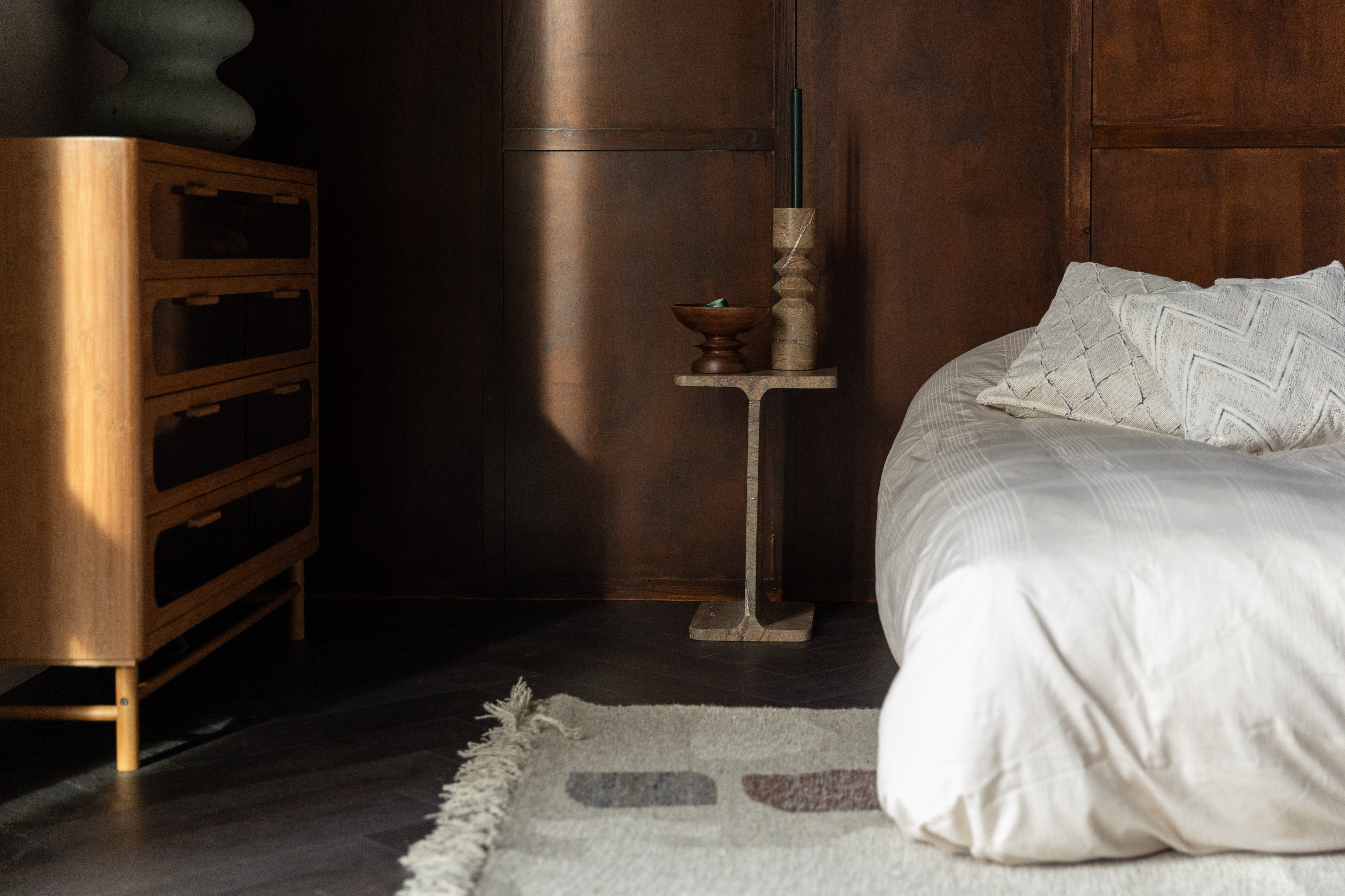 Tento mramorový svietnik sa skvele prezentuje samostatne alebo v kombinácii s ďalšími prvkami kolekcie Satpura – bočným stolíkom a stojanom na knihy. Je to ideálny výber do obývačky, spálne alebo čítacieho kútika, kde prinesie útulnú atmosféru, triedu a trochu vintage šarmu. Vďaka svojej prirodzenej štruktúre je každý kus jedinečný a dodá charakter každému interiéru.