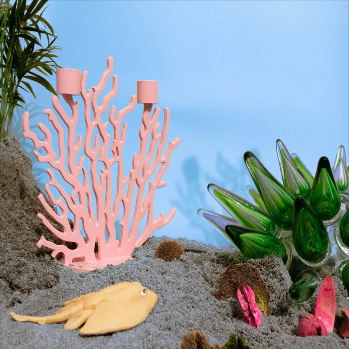Vyrobený z liateho hliníka natieraného na ružovo, Tenochtitlan pojme až sedem sviečok. Nie je to len funkčný svietnik, ale aj sochárska dekoratívna forma, ktorá priťahuje pohľady a vytvára atmosféru. Ideálny do interiérov, ktoré si cenia originalitu, energiu a súčasnú eleganciu.