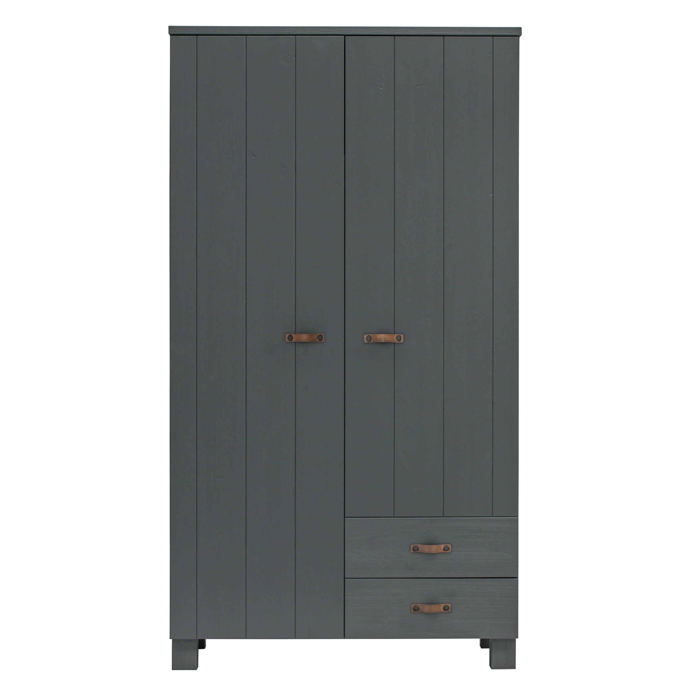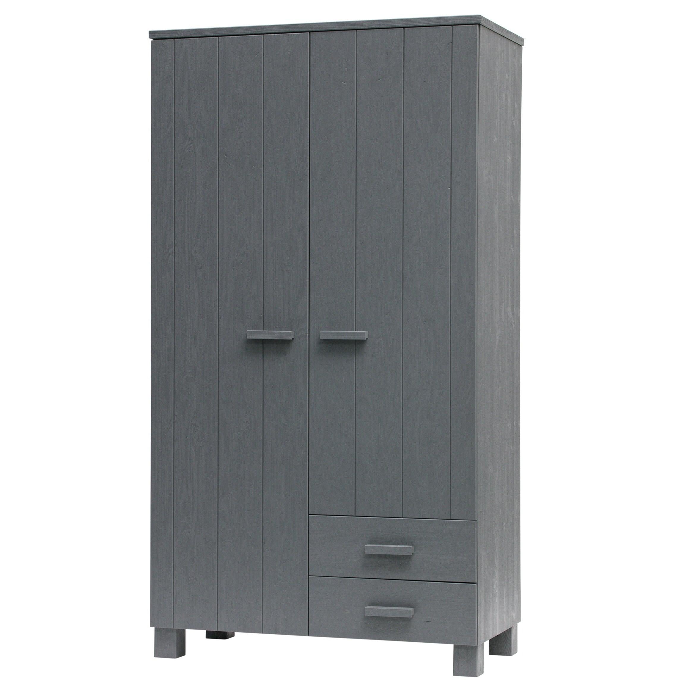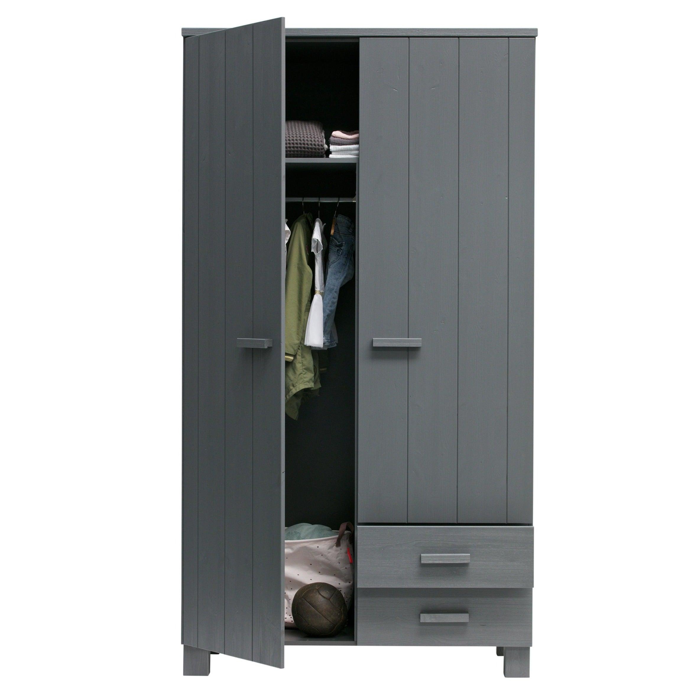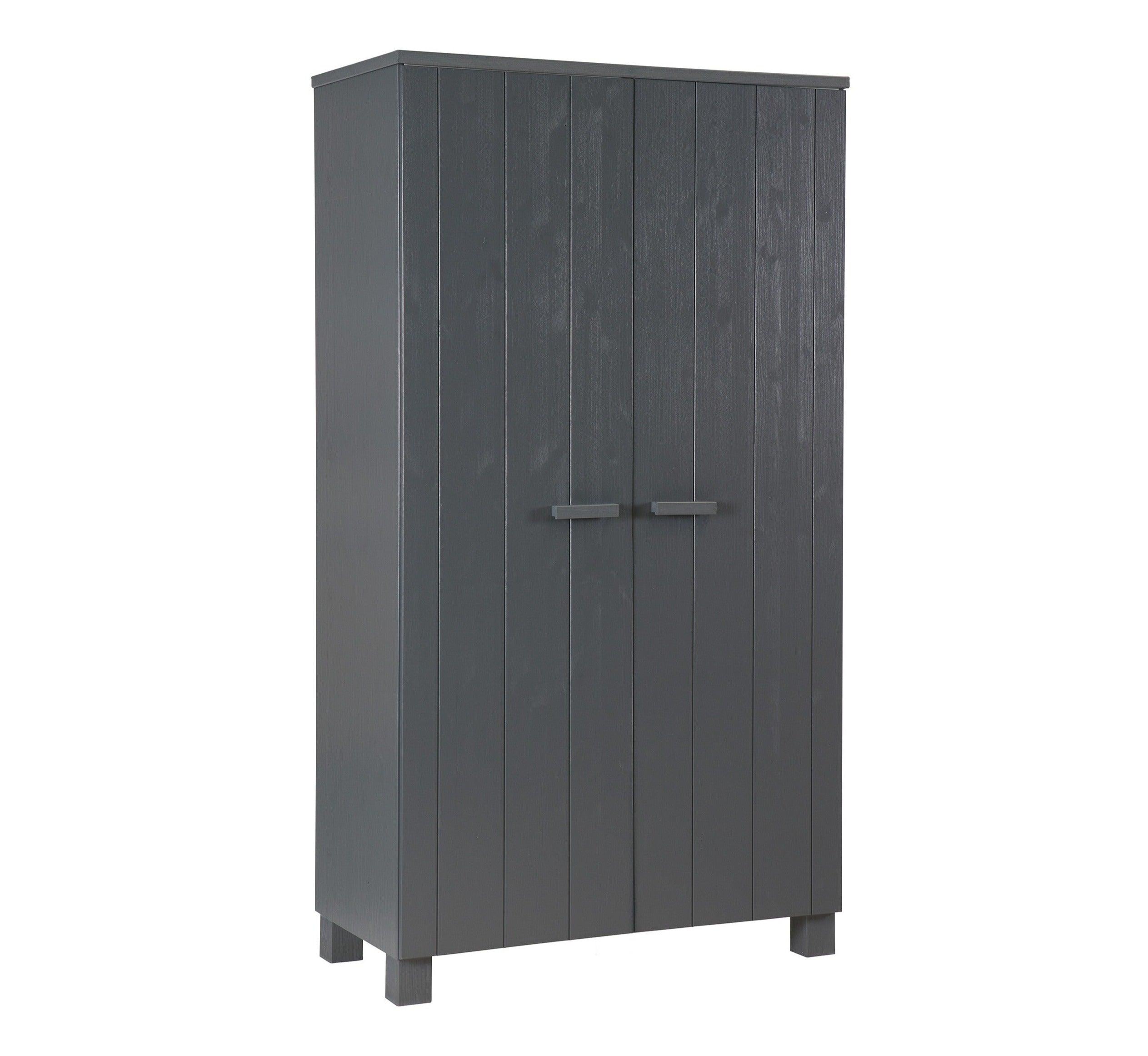 Grafitová skriňa Dennis je vyrobená z borovicového dreva, ktoré jej zabezpečuje dlhú životnosť a odolnosť. Dve dvere sa ľahko otvárajú, odhaľujúc úložný priestor, ktorý je dostatočne priestranný na to, aby sa doň zmestilo všetko, čo potrebujete - od oblečenia po posteľnú bielizeň či uteráky. Okrem toho môže byť skriňa vybavená dvoma praktickými zásuvkami, ktoré umožňujú ešte lepšiu organizáciu a uskladnenie drobných predmetov.
