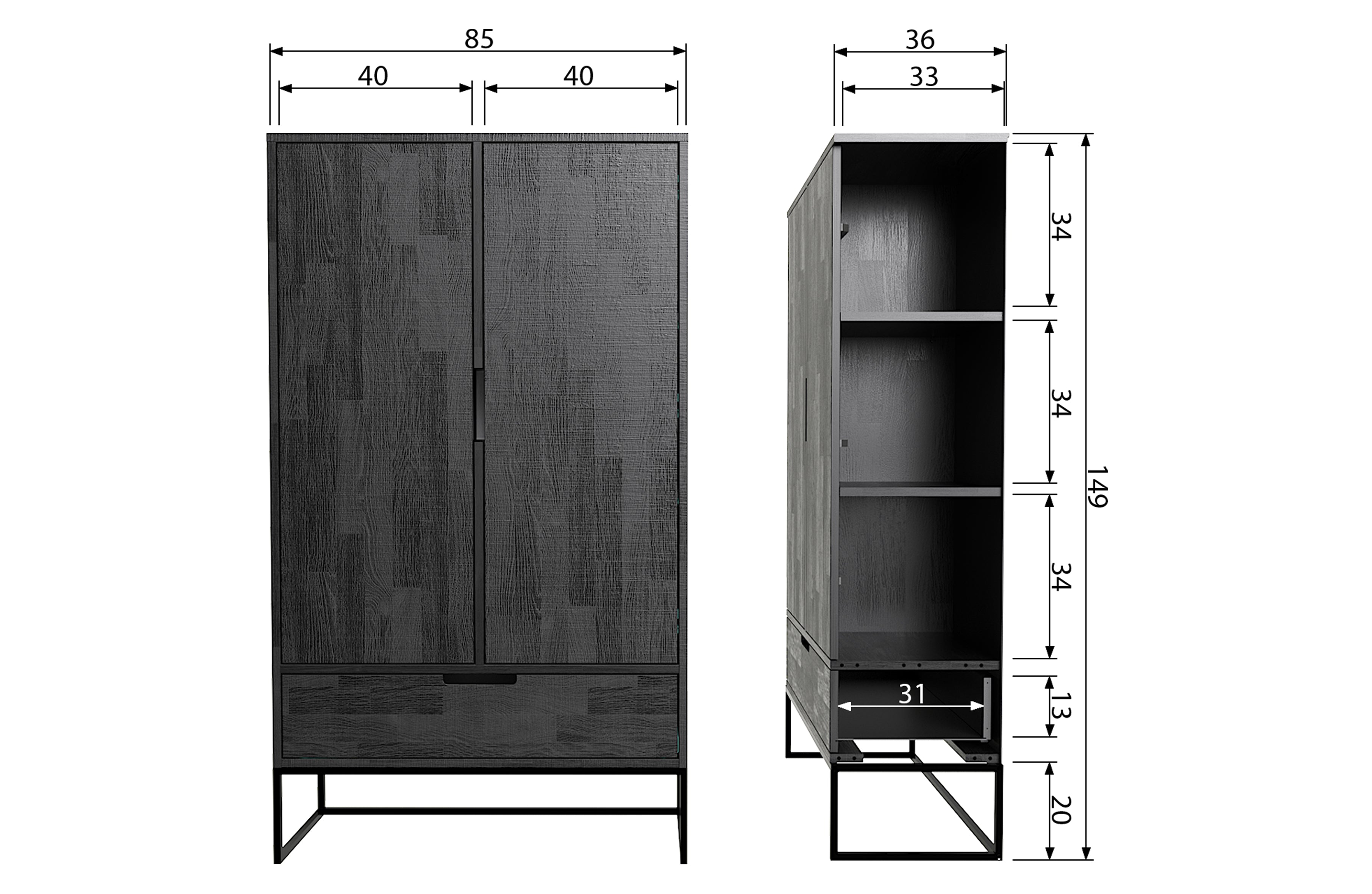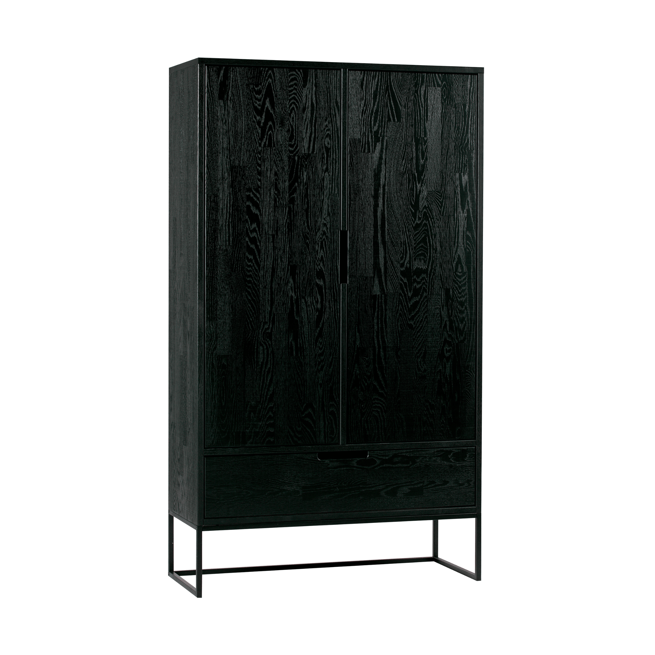 Čierna skriňa Silas má dve veľké skrinky a zásuvku, ktoré ponúkajú veľa miesta na uskladnenie rôznych predmetov, od oblečenia po posteľnú bielizeň či doplnky. Dvere skrine sú navrhnuté tak, aby zabezpečili jednoduchý prístup k uskladneným predmetom, pričom si zachovávajú elegantný vzhľad.