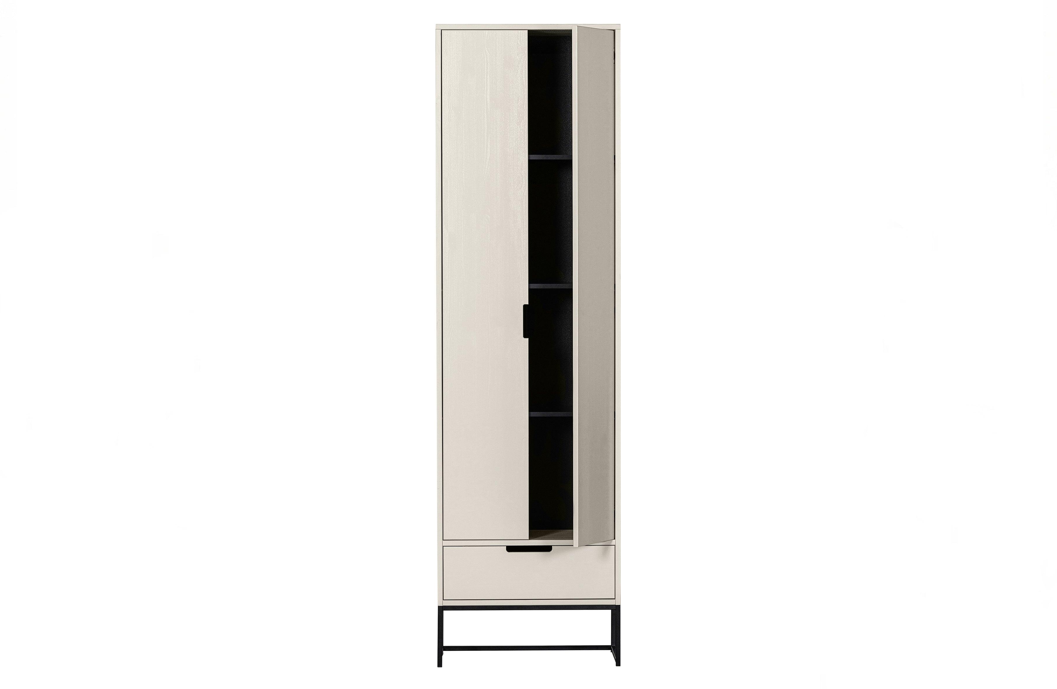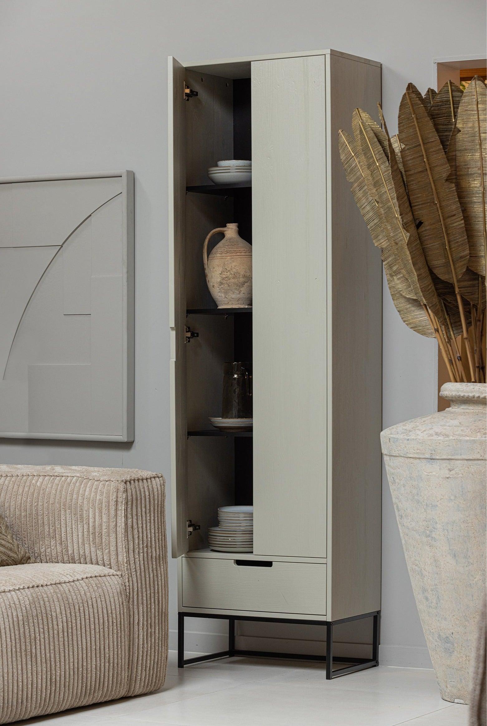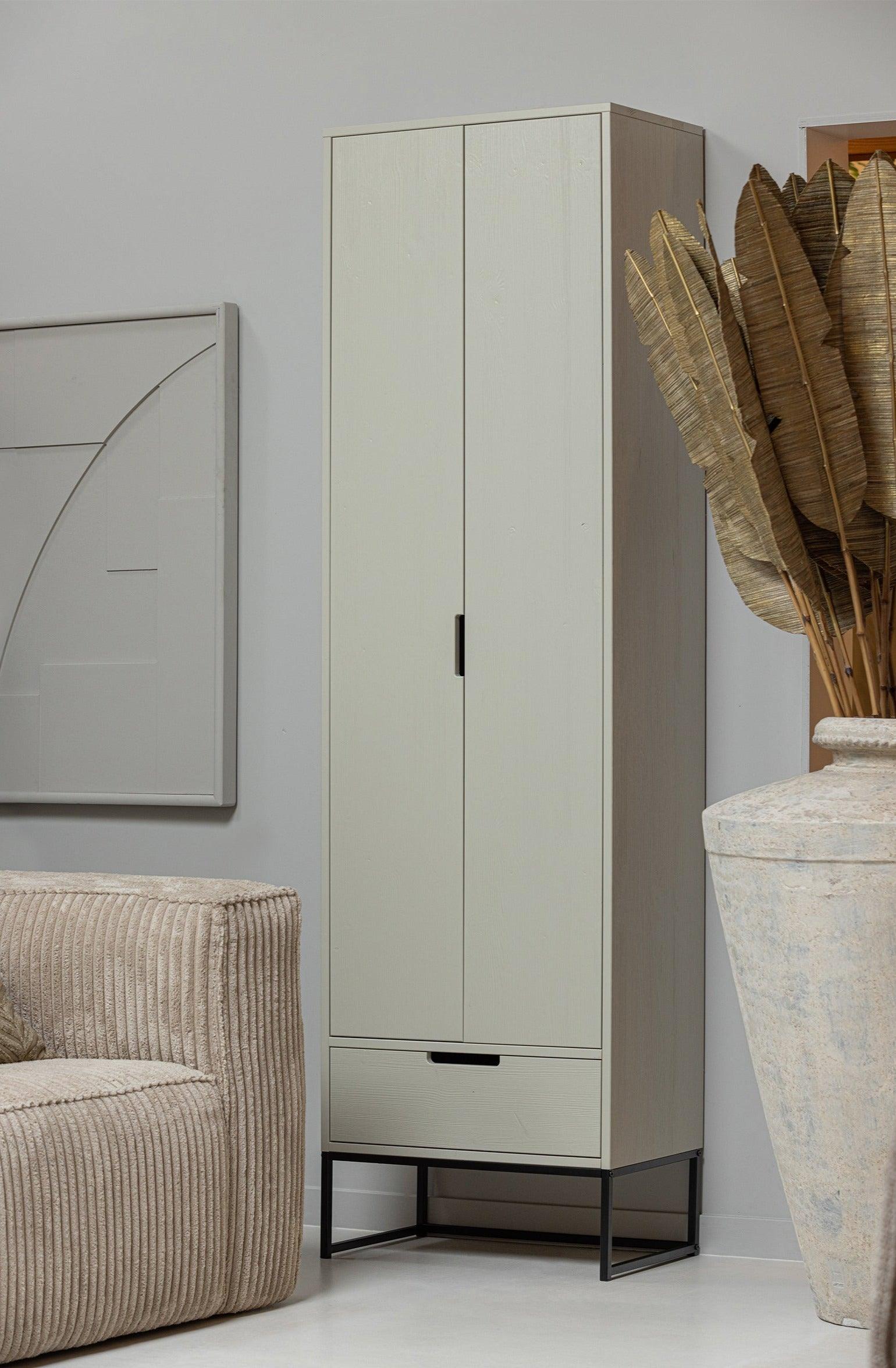 Úzka skriňa Silas v popolavej farbe je elegantný a funkčný doplnok do každého moderného domova. Spojuje v sebe jednoduchosť a eleganciu, ponúkajúc priestranné miesto na uskladnenie oblečenia a iných predmetov.