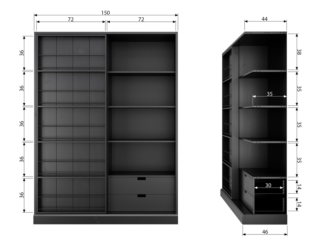 Čierna skriňa Swing je vyrobená z odolných materiálov, ktoré zabezpečujú jej dlhú životnosť a trvácnosť. Posuvné dvere sú navrhnuté tak, aby ste mohli pridať vlastné doplnky, ako napríklad fotografie, ktoré dodajú jedinečný charakter. Úložný priestor je dostatočne priestranný na to, aby sa doň zmestilo všetko, čo potrebujete - od oblečenia po posteľnú bielizeň či uteráky. Navyše, skriňa je vybavená dvoma praktickými zásuvkami, ktoré umožňujú ešte lepšiu organizáciu a uskladnenie drobných predmetov.