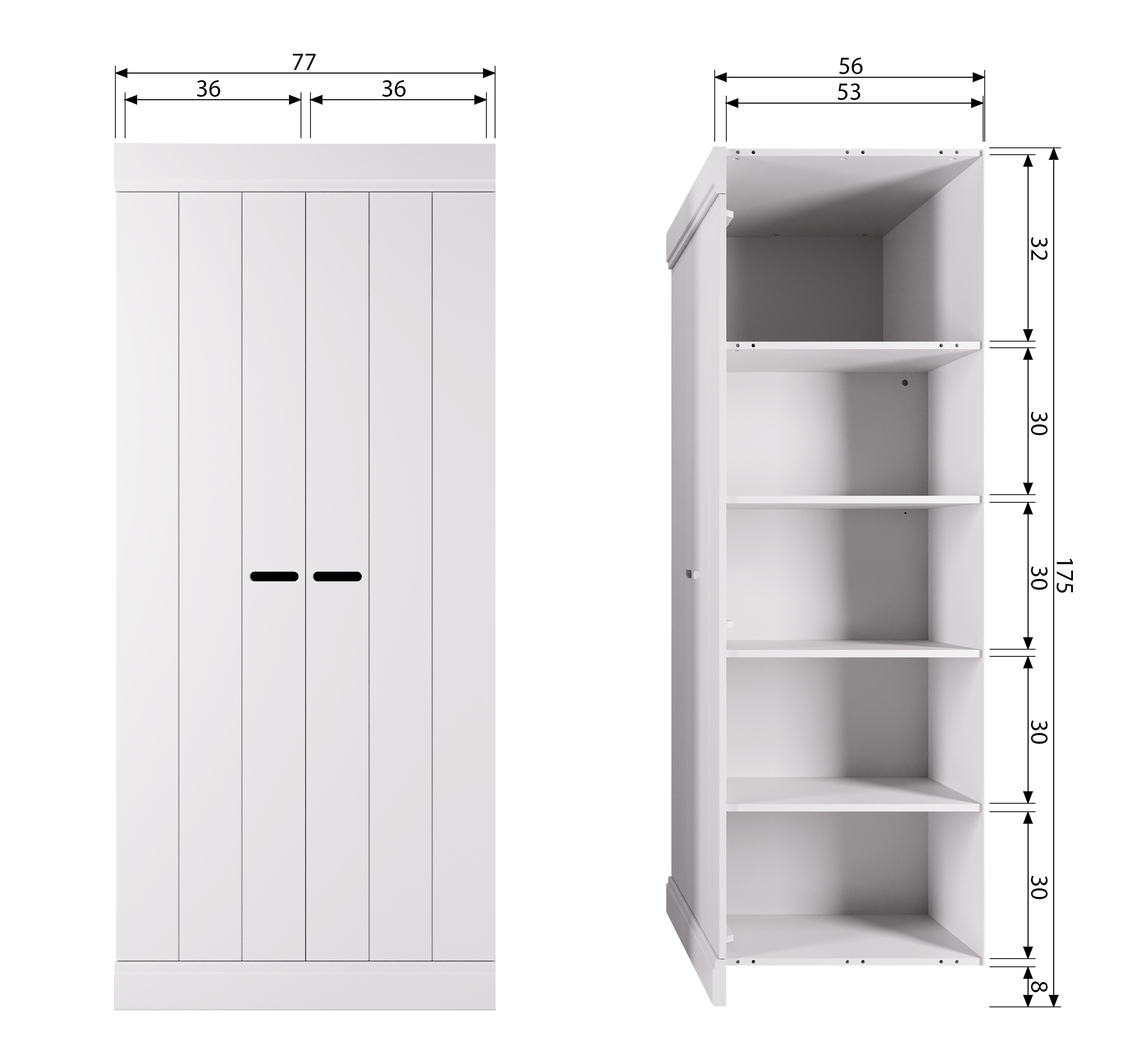 Malé rozmery skrine Connect robia z nej ideálny výber do malých spální, hosťovských izieb alebo multifunkčných priestorov. Vďaka svojej univerzálnej bielej farbe a minimalistickému dizajnu bude táto skriňa vynikajúcim doplnkom do každého interiéru, zdôrazňujúc jeho charakter a pridávajúc trochu škandinávskej jednoduchosti.