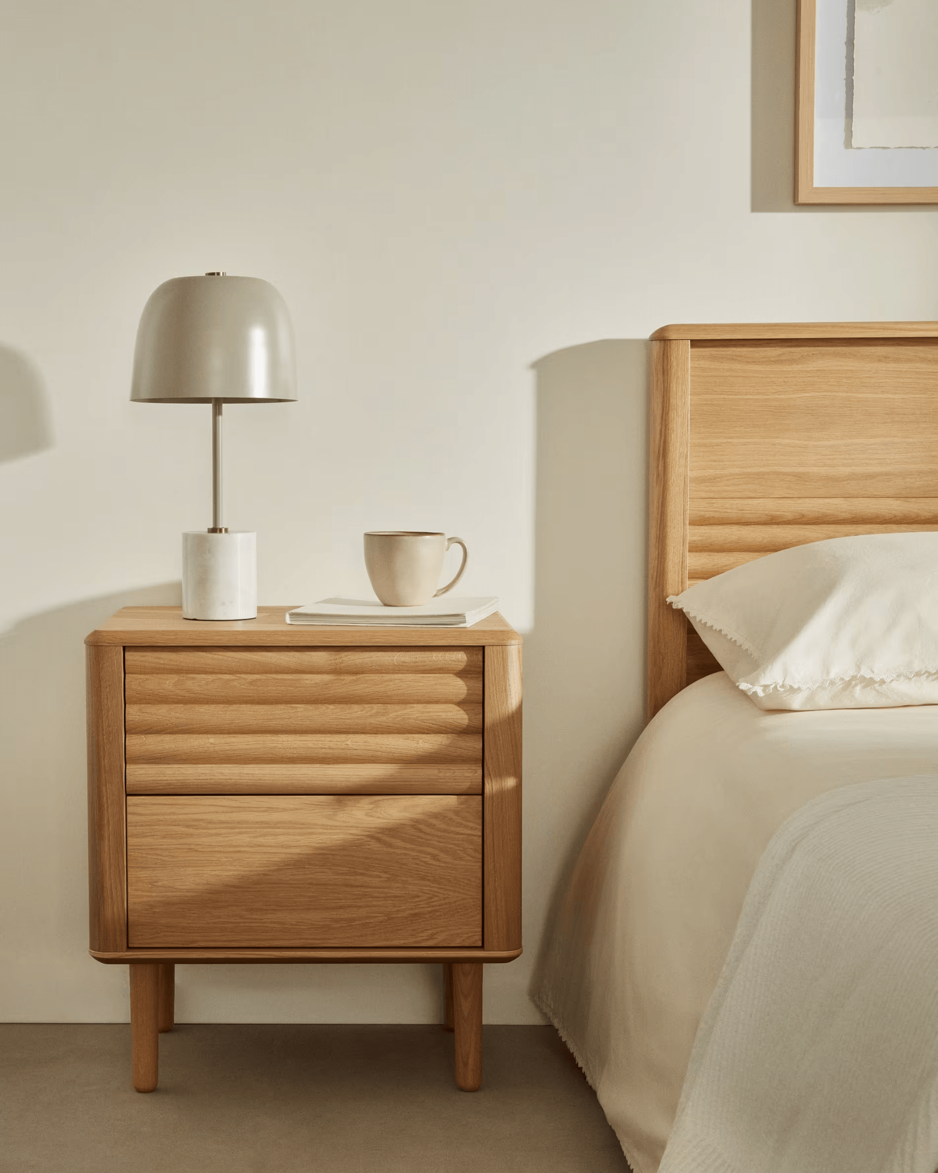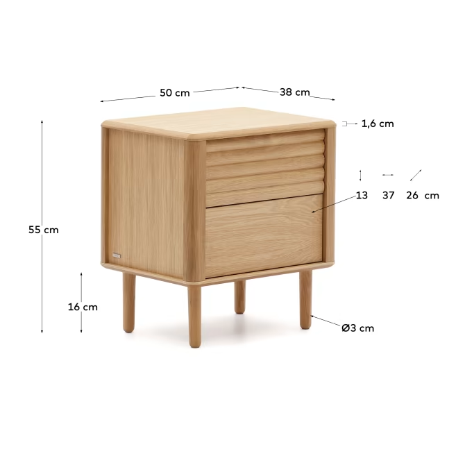 Materiał szuflady: Fornir dębowy (Quercus alba), MDF (płyta pilśniowa średniej gęstości)