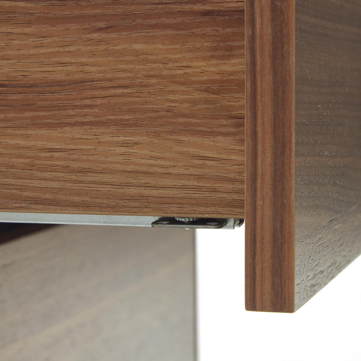 Materiał szuflady: MDF E0 (płyta pilśniowa średniej gęstości o niskiej emisji formaldehydu klasy E0), Fornir orzechowy