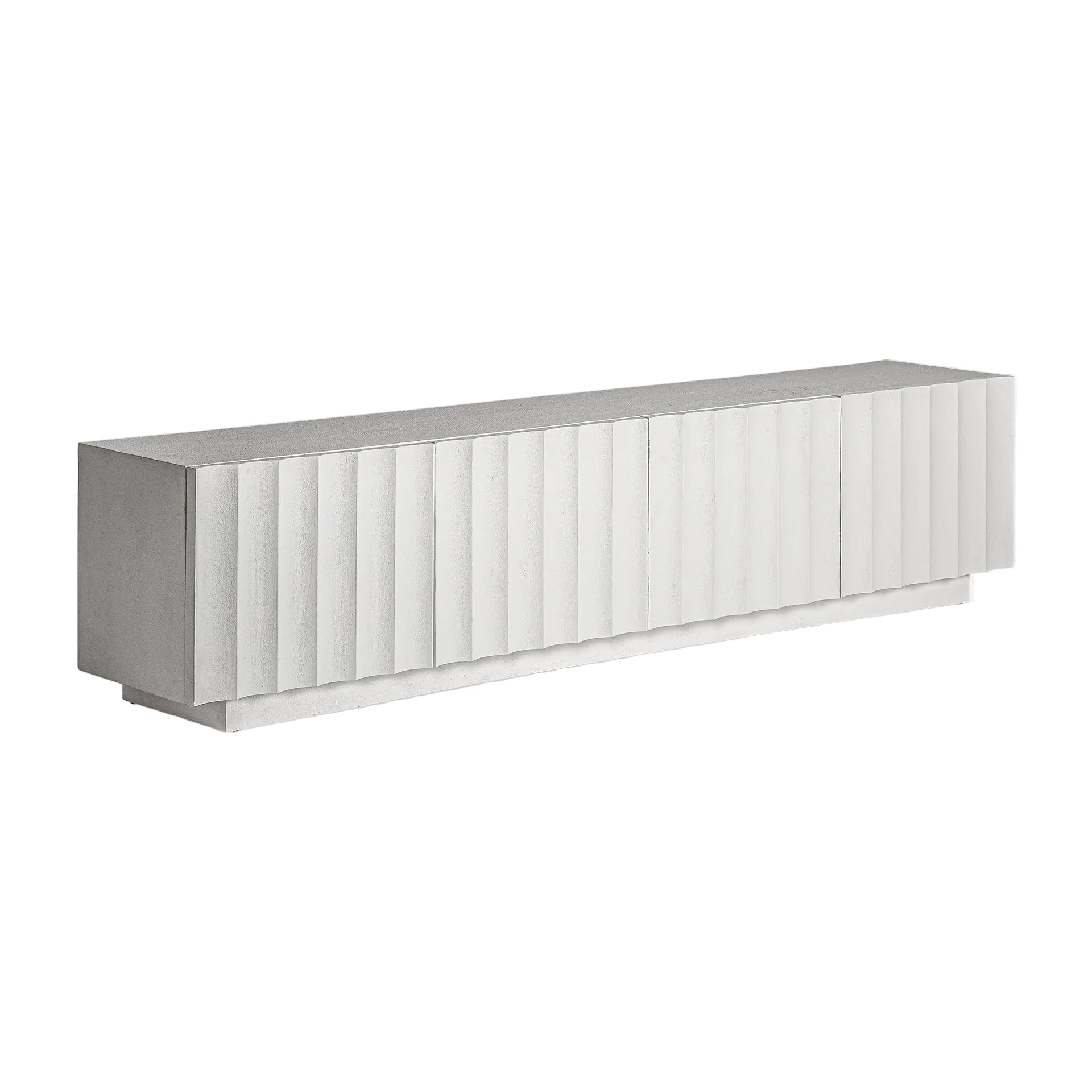 RTV skrinka Mulcey je moderný a minimalistický nábytok, ktorý sa vyznačuje jednoduchou formou a jasnou, elegantnou farebnosťou. Vyrobená z bielej živice v kombinácii s MDF doskou, vnáša do interiéru ľahkosť a moderný charakter. Táto funkčná RTV skrinka sa skvele hodí ako priestor na multimediálne zariadenia a dekorácie, vytvárajúc usporiadanú a estetickú aranžáciu.