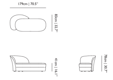 Szezlong Aldora, navrhnutý Cristinou Celestino, je k dispozícii s opierkou na ruke na ľavej alebo pravej strane. Je to súčasná interpretácia klasickej koncepcie, kde mäkké ženské tvary, inšpirované pôvabnými lupienkami kalií, odkazujú na pôvab milánskej buržoáznej dekadencie.
