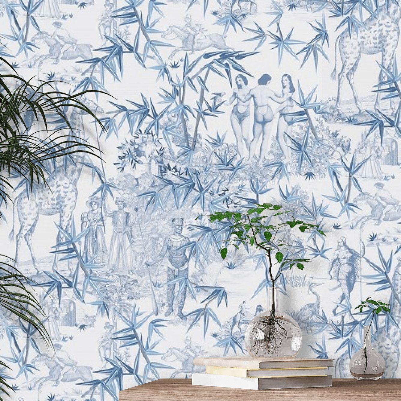 Tapeta Exotisme Aube je jedinečný dekoratívny prvok, ktorý obohatí každé interiér o nádych exotiky a elegancie. Charakteristickým prvkom tejto tapety je scénický potlač, zobrazujúci bujnú vegetáciu v podobe listov, čím dodáva miestnosti výnimočnú, tropickú atmosféru. Výber vzoru odkazuje na klasickú úpravu Lacroix, čo dodáva tapete jedinečný charakter a excentricitu. Modrá tapeta je vyrobená na hladkej vliesovej podložke, čo nielen zaručuje trvácnosť, ale aj uľahčuje proces zavesenia. Vďaka tejto štruktúre materiálu sa tapeta dokonale prispôsobí stene, vytvárajúc rovnomerný a estetický povrch.