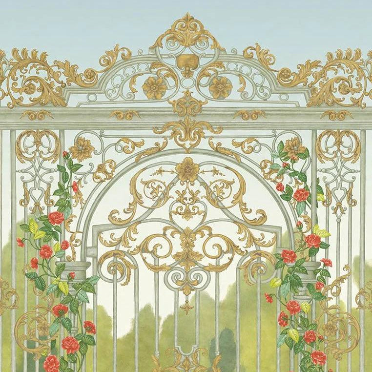 Tapeta s rastlinnou krajinou brány a parku HRP GREAT MASTERS - Tijou Gate zelená s modrou