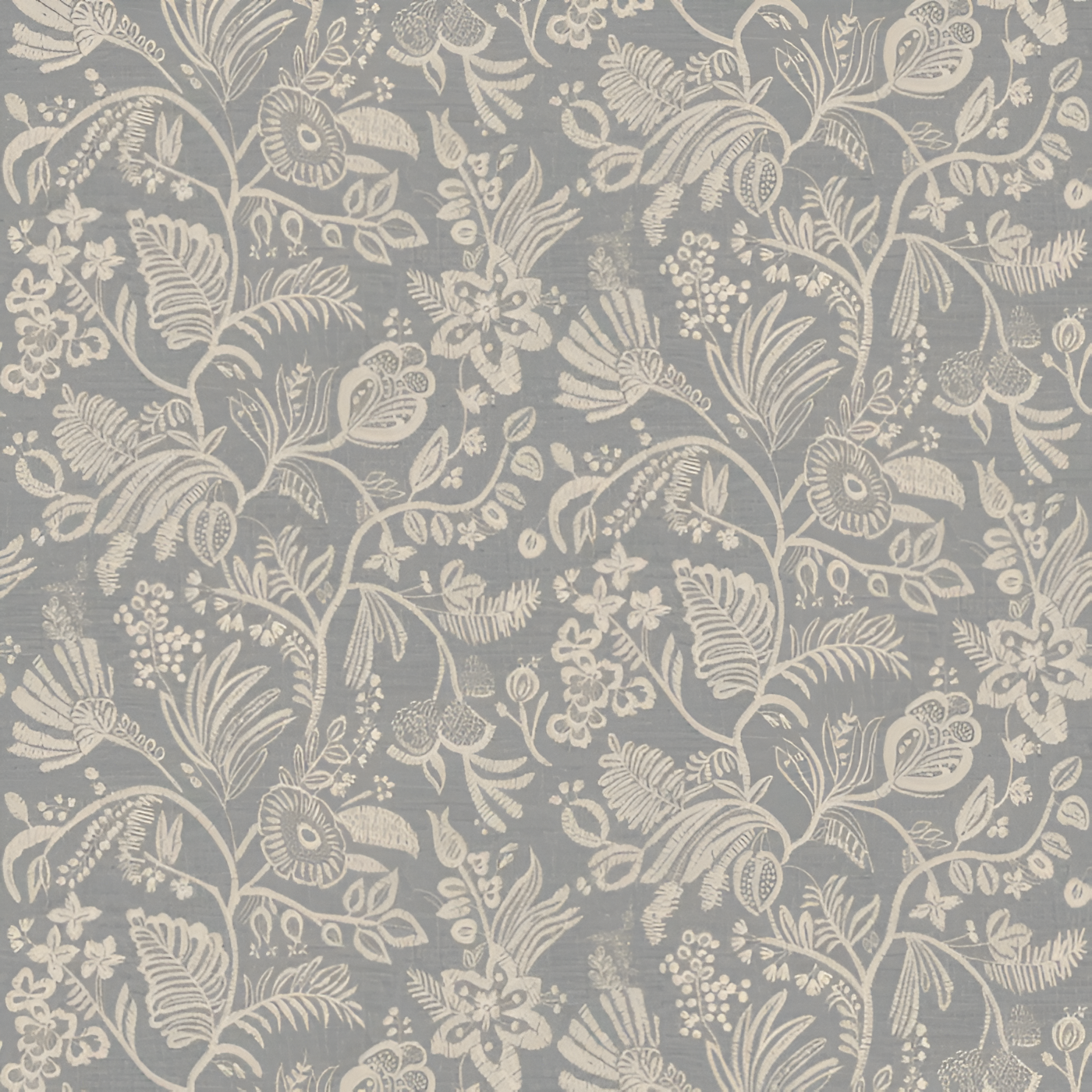 Tapeta so štruktúrou napodobňujúcou výšivku s rastlinným motívom kvetov a listov PASTEL - PIERRE BLEUE šedoblušia